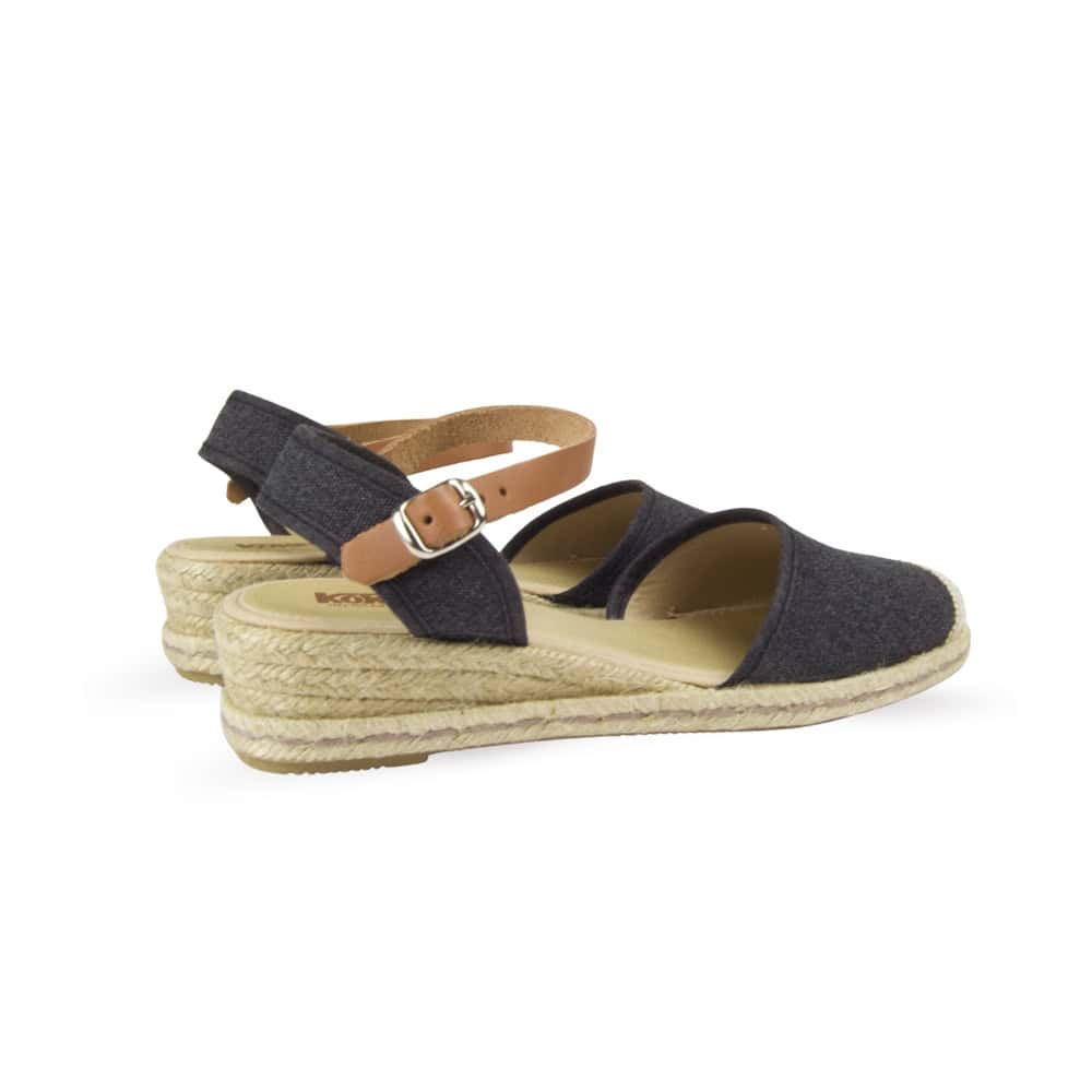 Alpargata mujer negra cuña 4821 de la marca Kokis es un calzado elegante y cómodo, ideal para los meses de primavera y verano. Fabricada en material textil, cuenta con puntera cerrada y talonera, pulsera tobillera con hebilla ajustable ofreciendo una mayor sujeción y estabilidad al caminar.