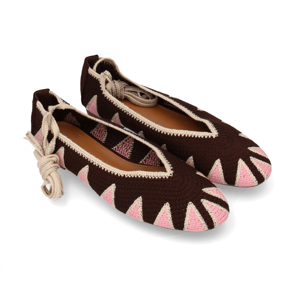 Bailarina crochet Cervera Inspired AW-5701 Marrón destaca por su diseño artesanal hecho a mano, perfecto para quienes buscan un calzado ligero, fresco y con personalidad para la temporada primavera-verano.