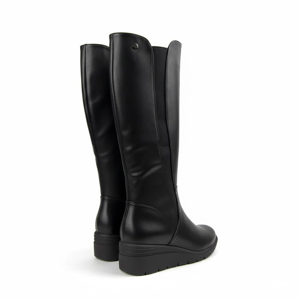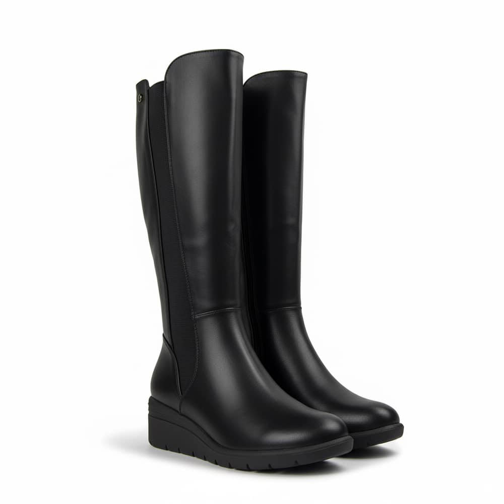 Bota Mujer Hispaflex 2510 combina elegancia y confort en un diseño versátil que se adapta al ritmo de la mujer actual. Fabricada en material que imita la piel, incorpora un elástico lateral para un mejor ajuste y una cuña cómoda de 5 cm que ofrece altura y estabilidad sin renunciar a la comodidad.
