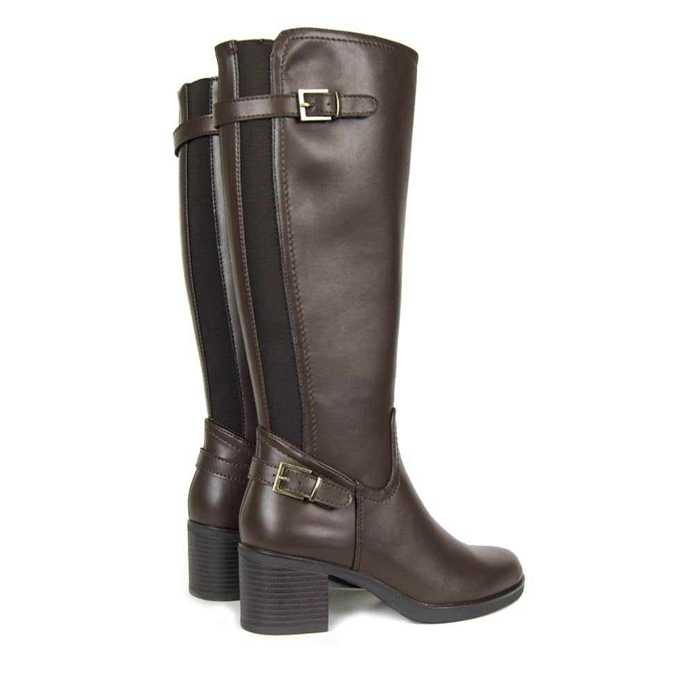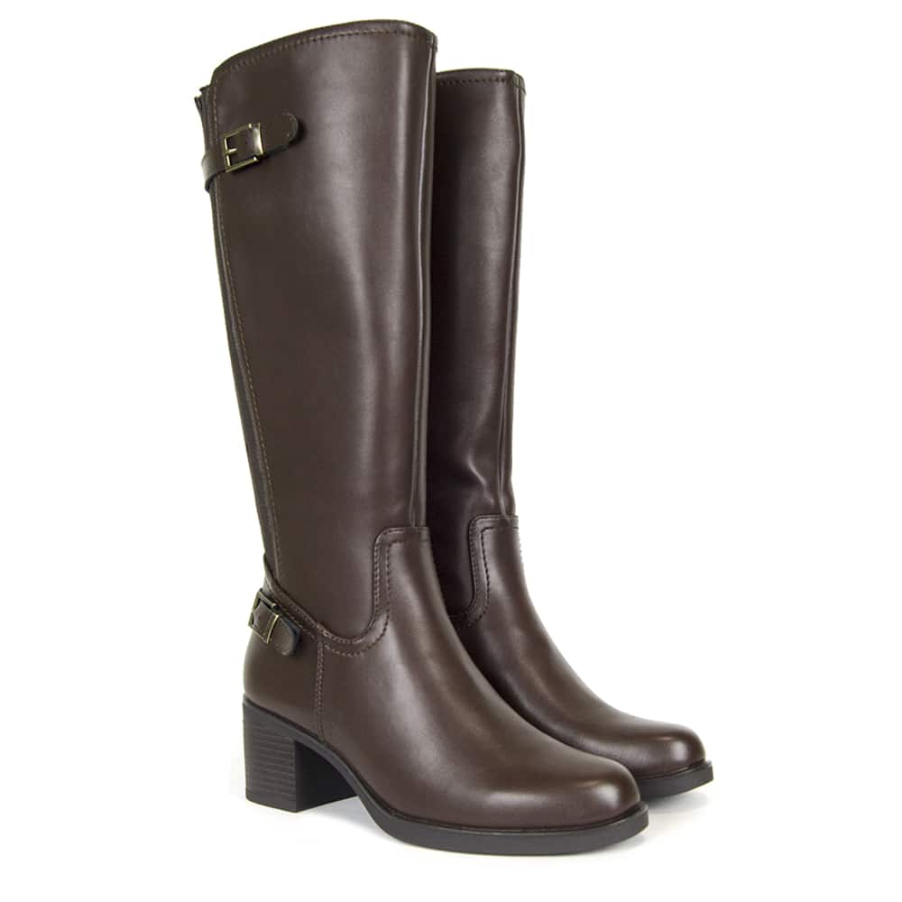 Las hebillas decorativas añaden un toque sofisticado al diseño, haciendo de esta bota una opción versátil que combina con faldas, vestidos o pantalones.