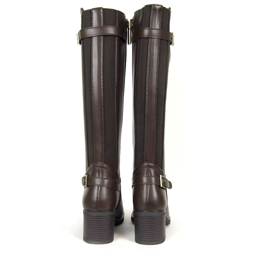 Gracias a su elástico trasero, esta bota se adapta perfectamente al contorno de la pierna, ofreciendo una sensación de comodidad y sujeción incluso en piernas más anchas.