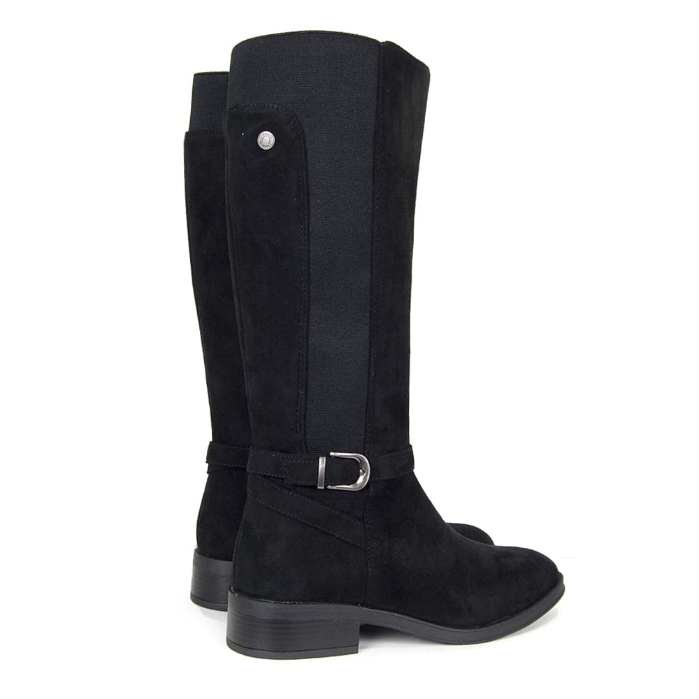 La Bota Plana Mujer 5126 combina elegancia y confort en un diseño pensado para el día a día. Fabricada en suave antelina, ofrece un tacto agradable y un ajuste perfecto gracias a su elástico trasero, ideal para piernas más anchas. Su hebilla decorativa añade un toque moderno y sofisticado, convirtiéndola en una pieza imprescindible para esta temporada.