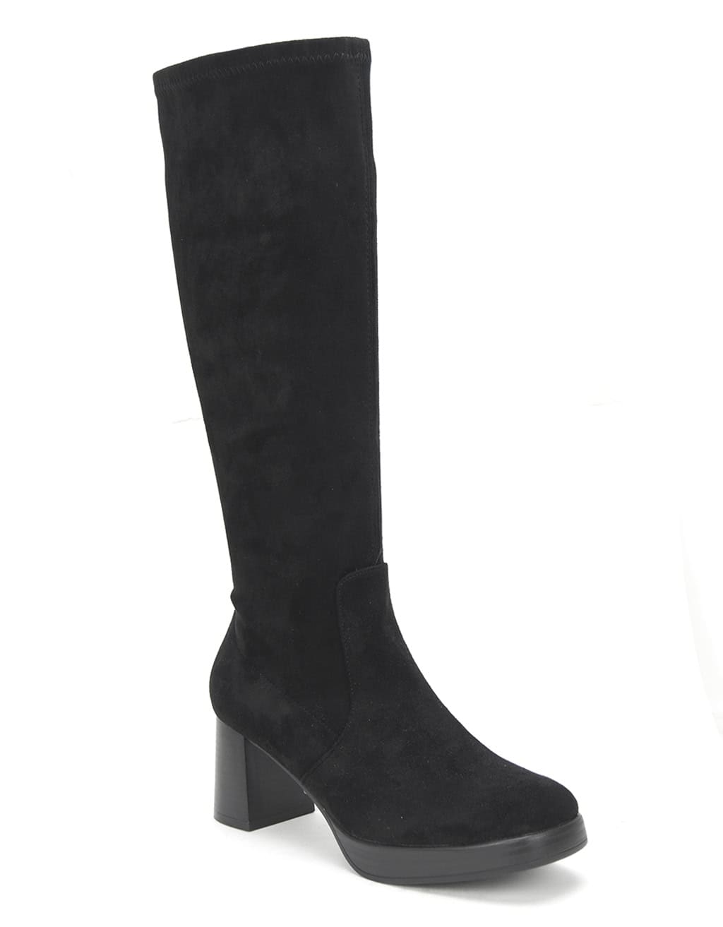 Bota de mujer con tacon, de la marca Mysoft. Fabricada en suave antelina elástica para un buen ajuste. Cremallera lateral. Elegante tacón ancho de 6.5 cm con plataforma delantera para mayor comodidad. Suela antideslizante.