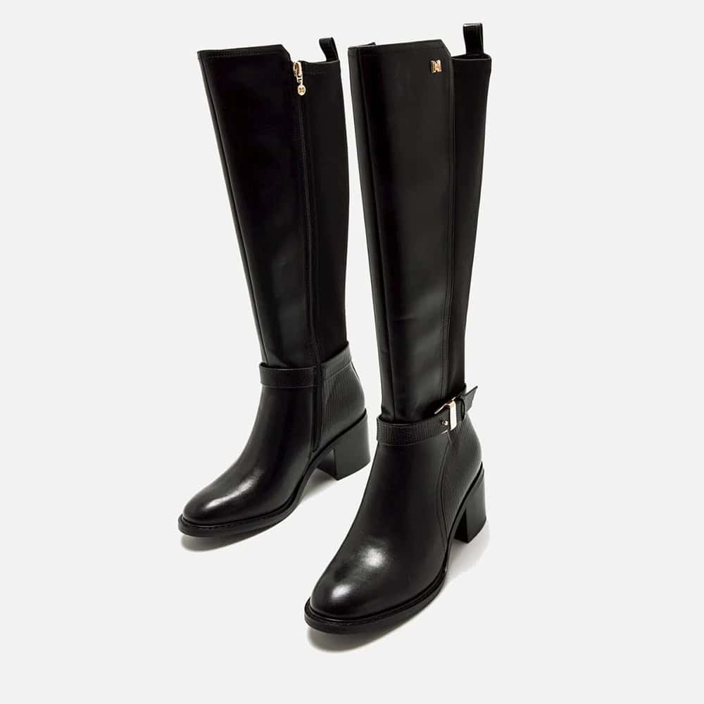 La caña alta en color negro aporta elegancia y realza cualquier conjunto.