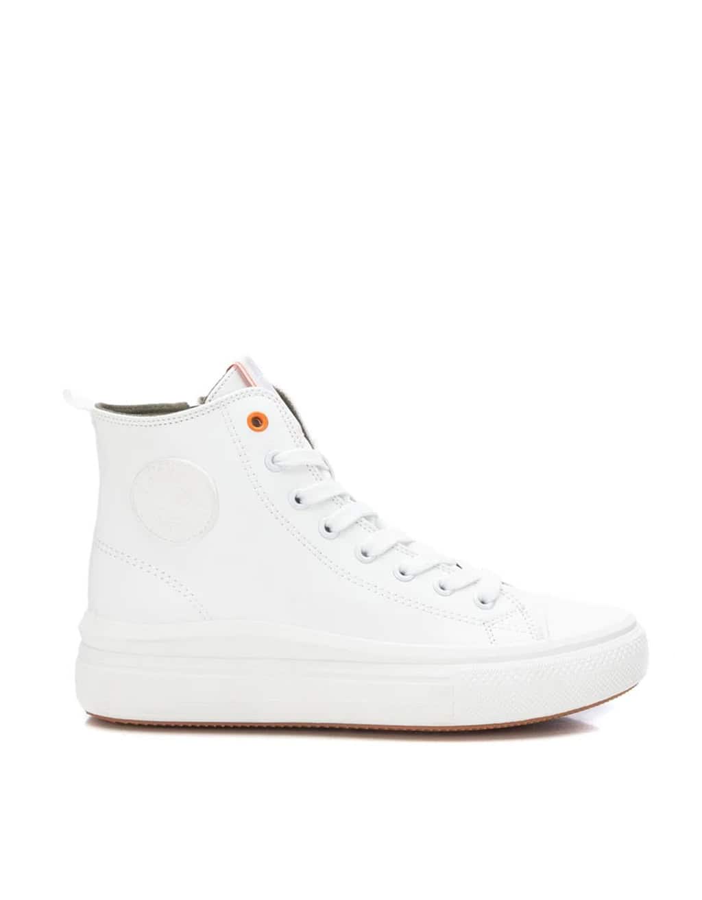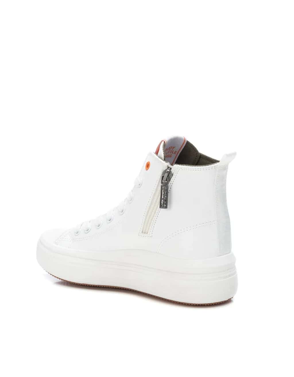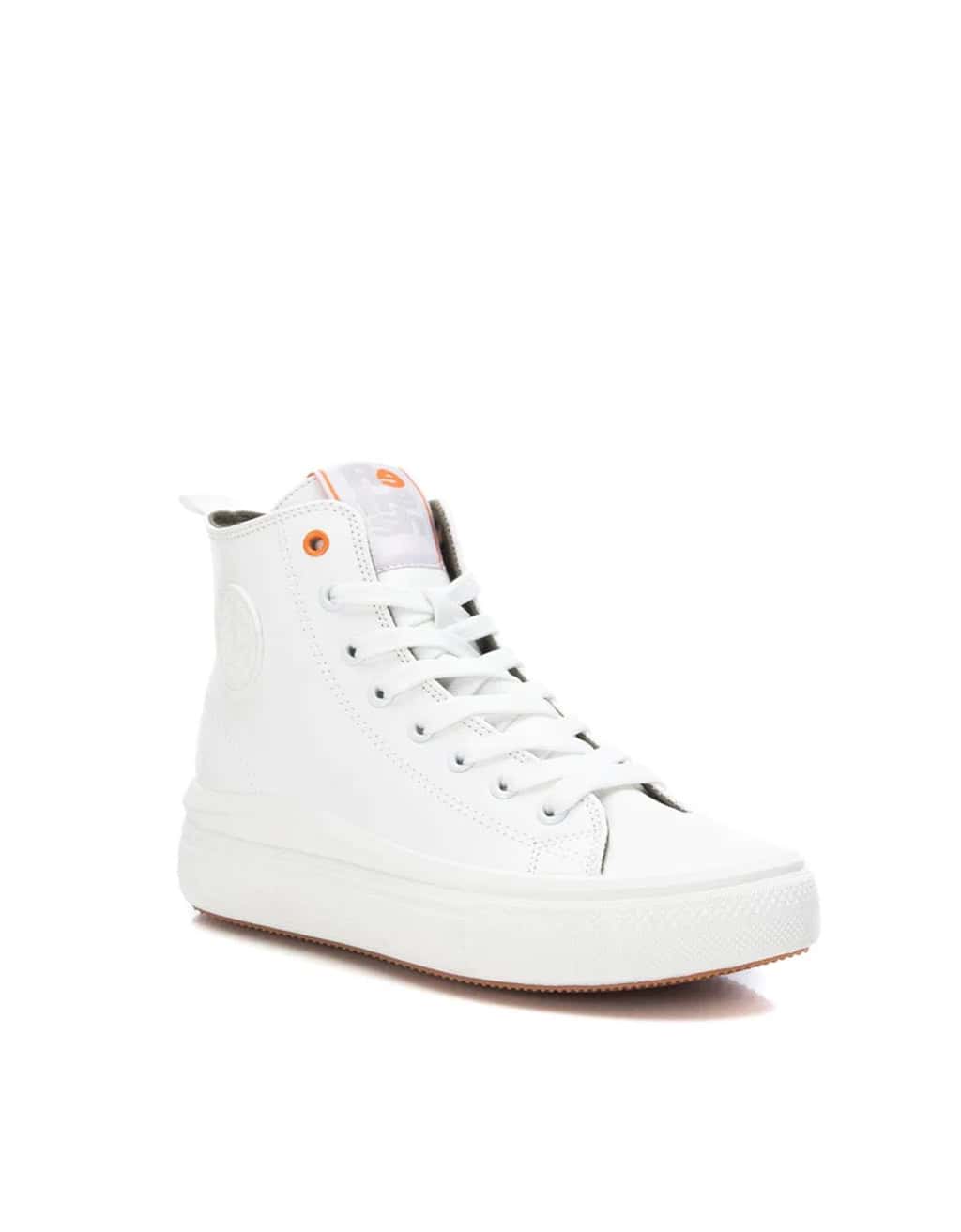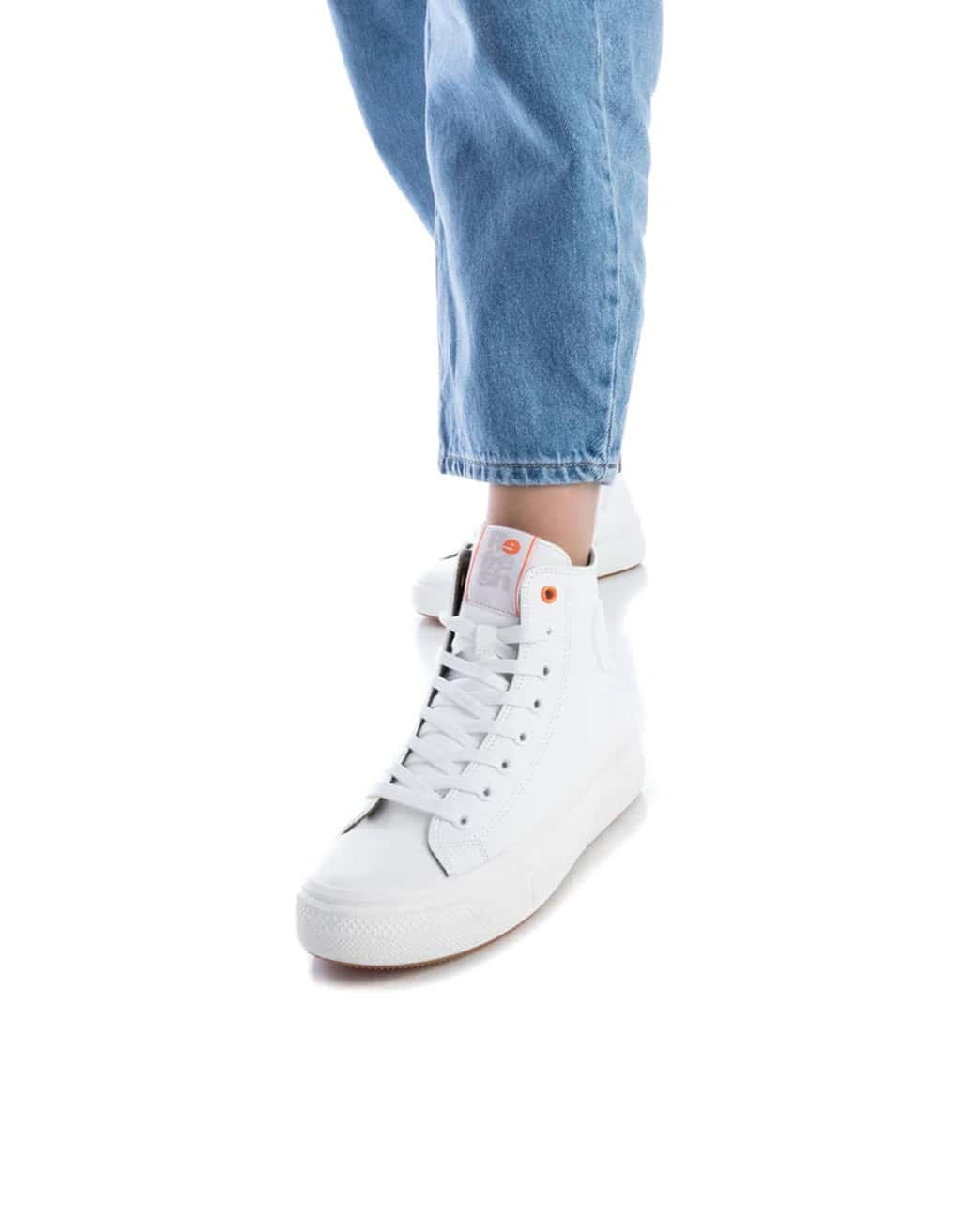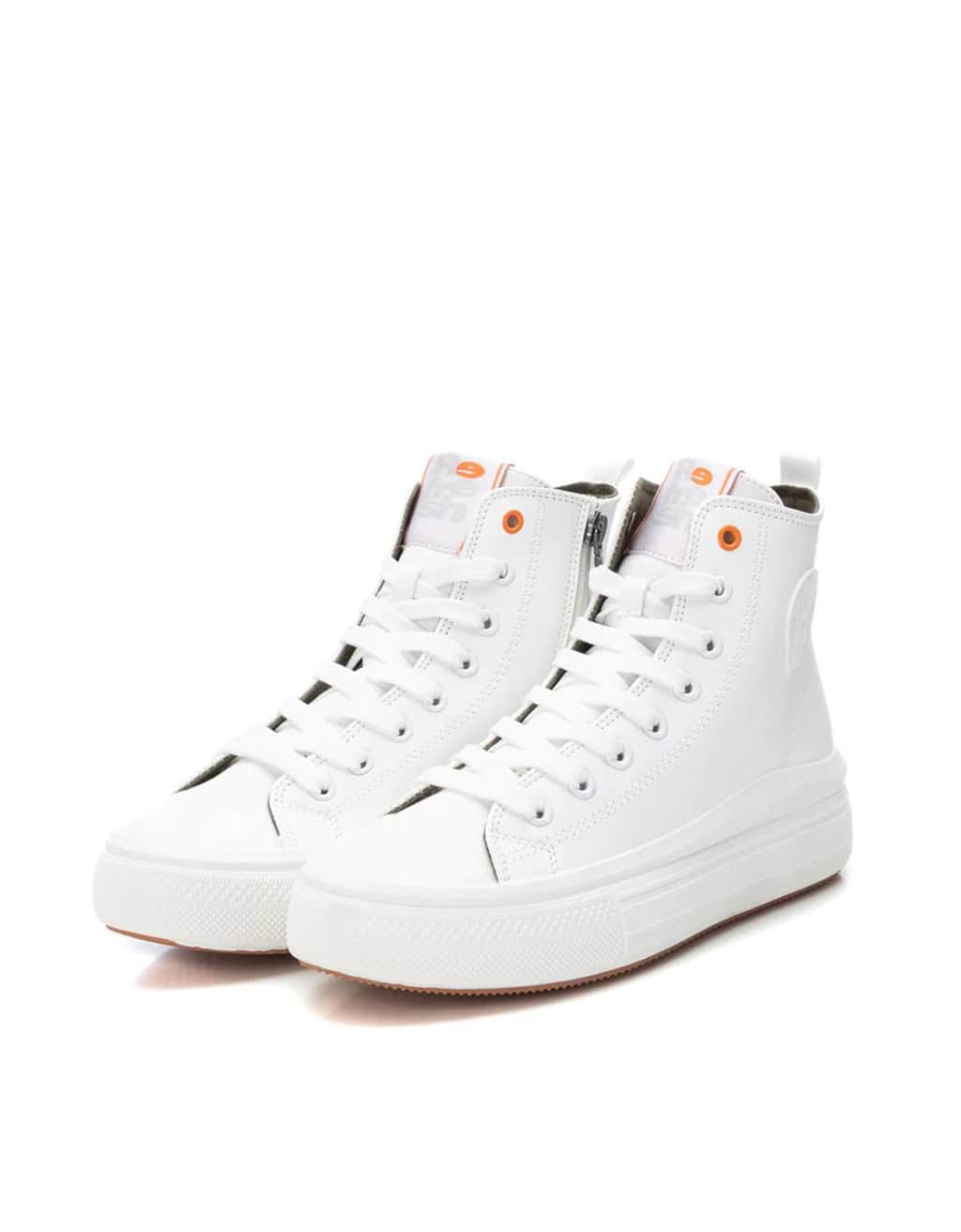 Botín deportivo de mujer, de la marca Refresh. Fabricado en material que imita la piel. Cierre mediante cremallera lateral y cordones ajustables. Tirador trasero para facilitar la puesta. Forro en contraste. Doble piso con suela de goma antideslizante. Este modelo ha obtenido el certificado vegano por la organización mundial PETA (Organización de los derechos de los animales).