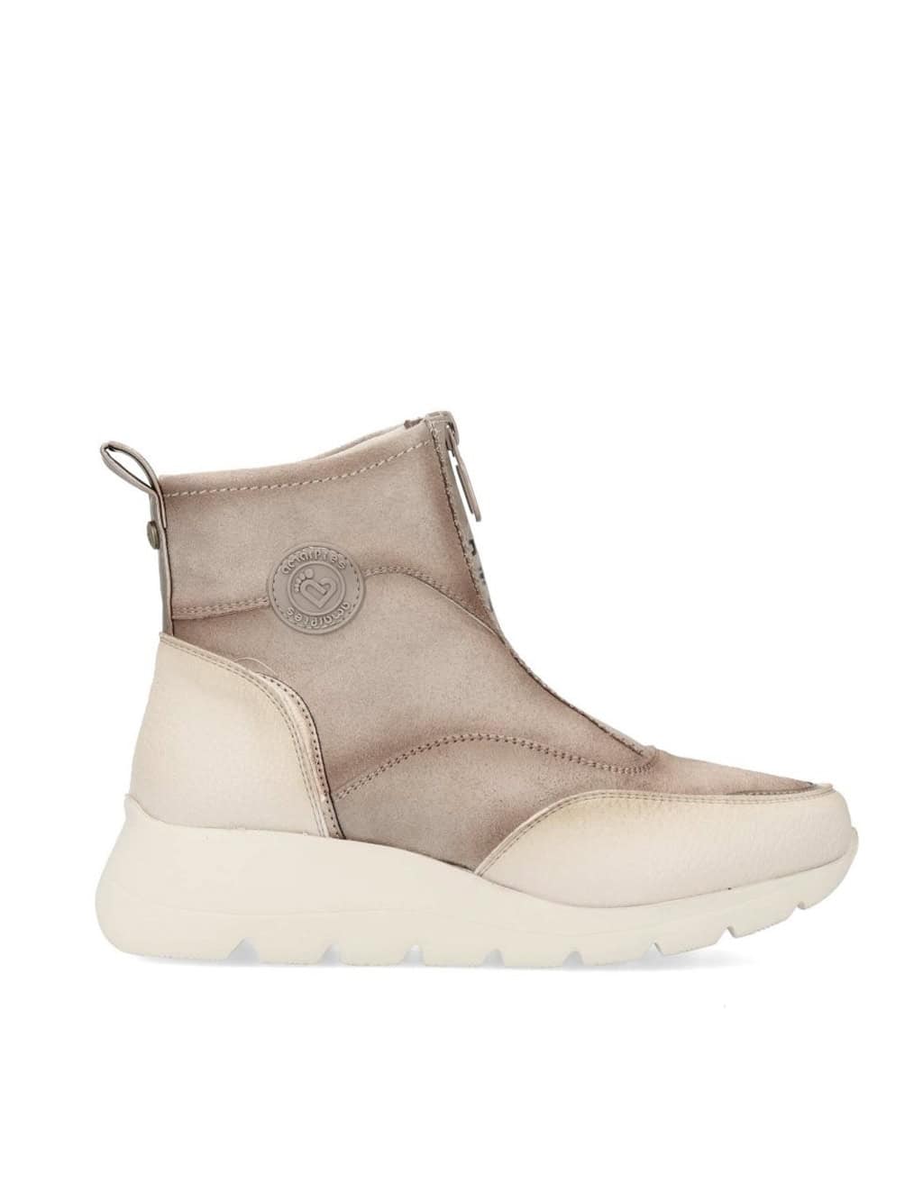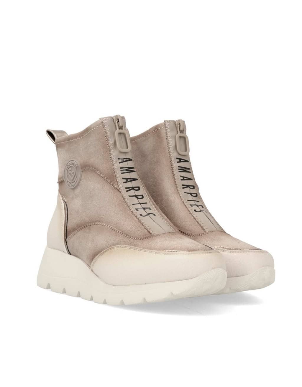 Botín casual para mujer de la marca Amarpies, modelo AMD27098. Fabricado en material que imita la piel en diferentes texturas. Cierre de cremallera, proporcionando un ajuste seguro y fácil de usar. Un modelo urbano, casual y extremadamente cómodo. Plantilla extraíble, que garantizan la comodidad desde la primera puesta además de amortiguar y suavizar los impactos.