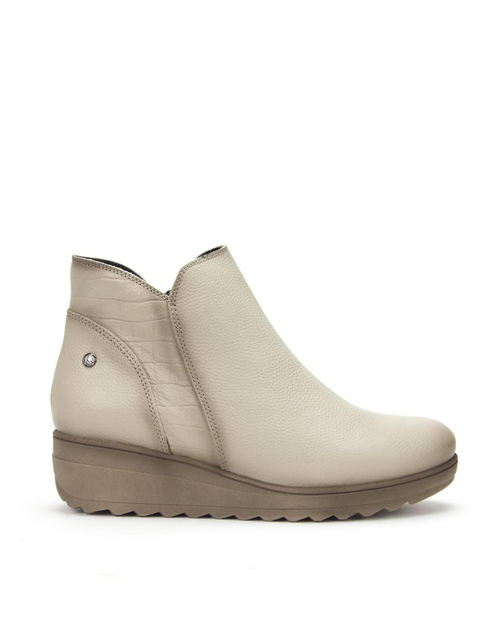 Botin para mujer de la marca Cervera Inspired, realizado en piel de primera calidad. Forro interior de piel con plantilla acochada. Cierre mediante cremallera lateral. Detalles en coco para darle un toque de elegancia. Modelo cómodo y práctico combinable tanto para un look desenfadado como informal.