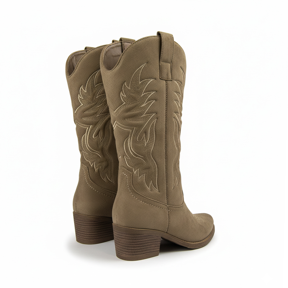El Botín Mujer Cowboy 5121 destaca por su diseño versátil y su comodidad incomparable. Su estilo western moderno permite crear looks llenos de carácter, mientras que la antelina suave y la suela antideslizante garantizan confort y estabilidad en cada paso.