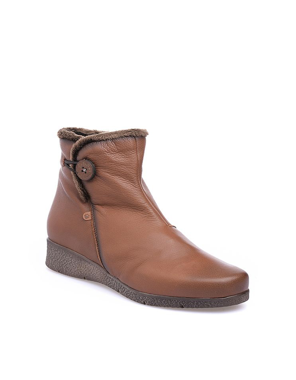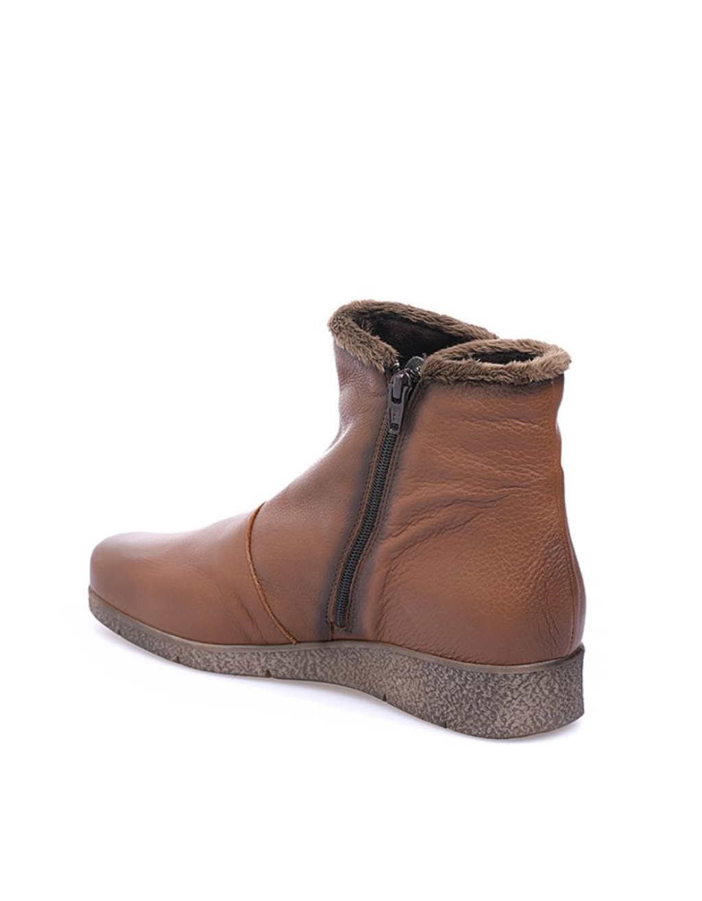 Botin para mujer de la marca Valerias, modelo 4566. Fabricado en piel de primera calidad. Cierre mediante cremallera lateral. Detalle en el lateral con pelo en el interior. Cómoda cuña de 3 cm con suela antideslizante. La plantilla es extraible. Hecho en España. Un botín cómodo y fácil de combinar para tu día a día.