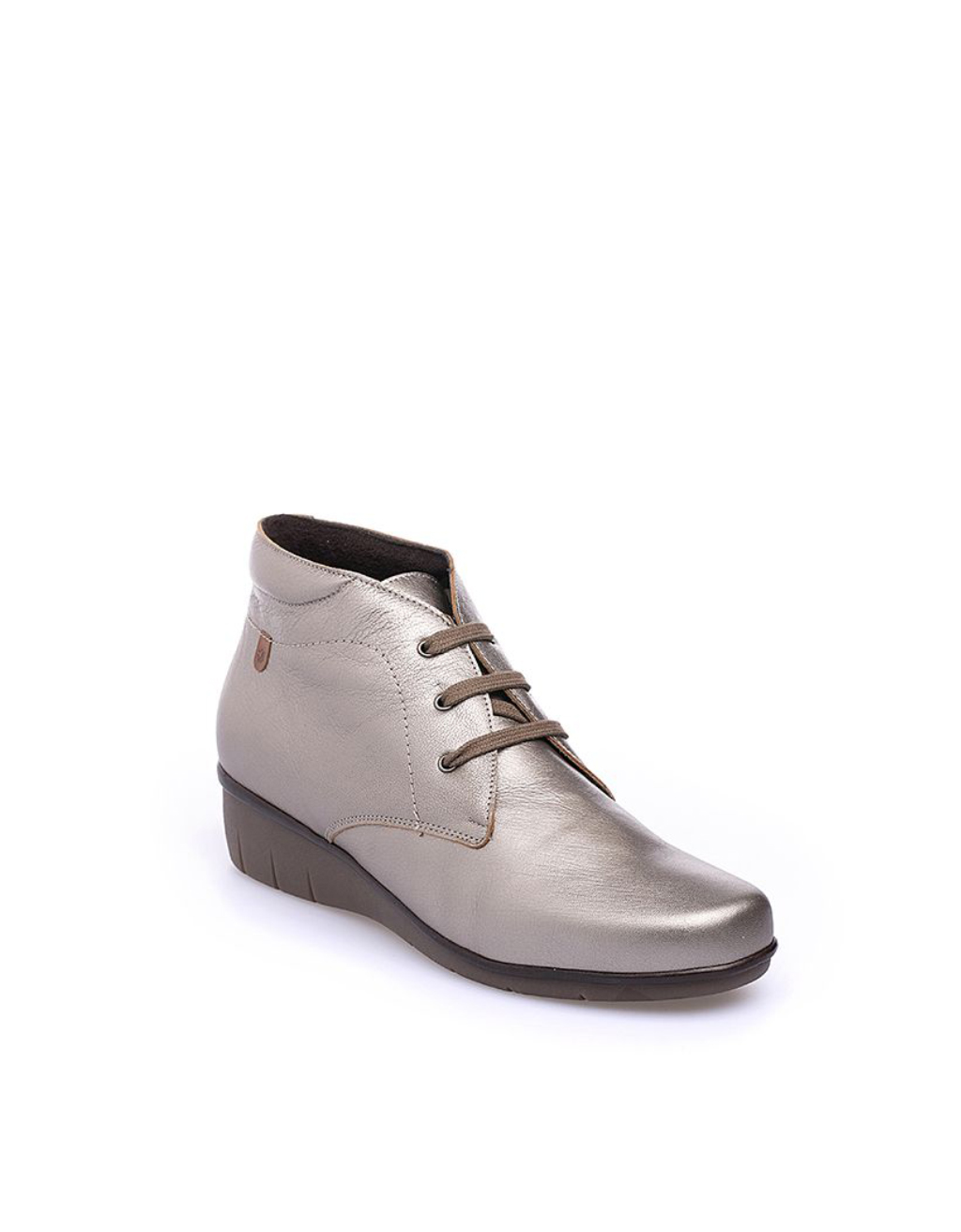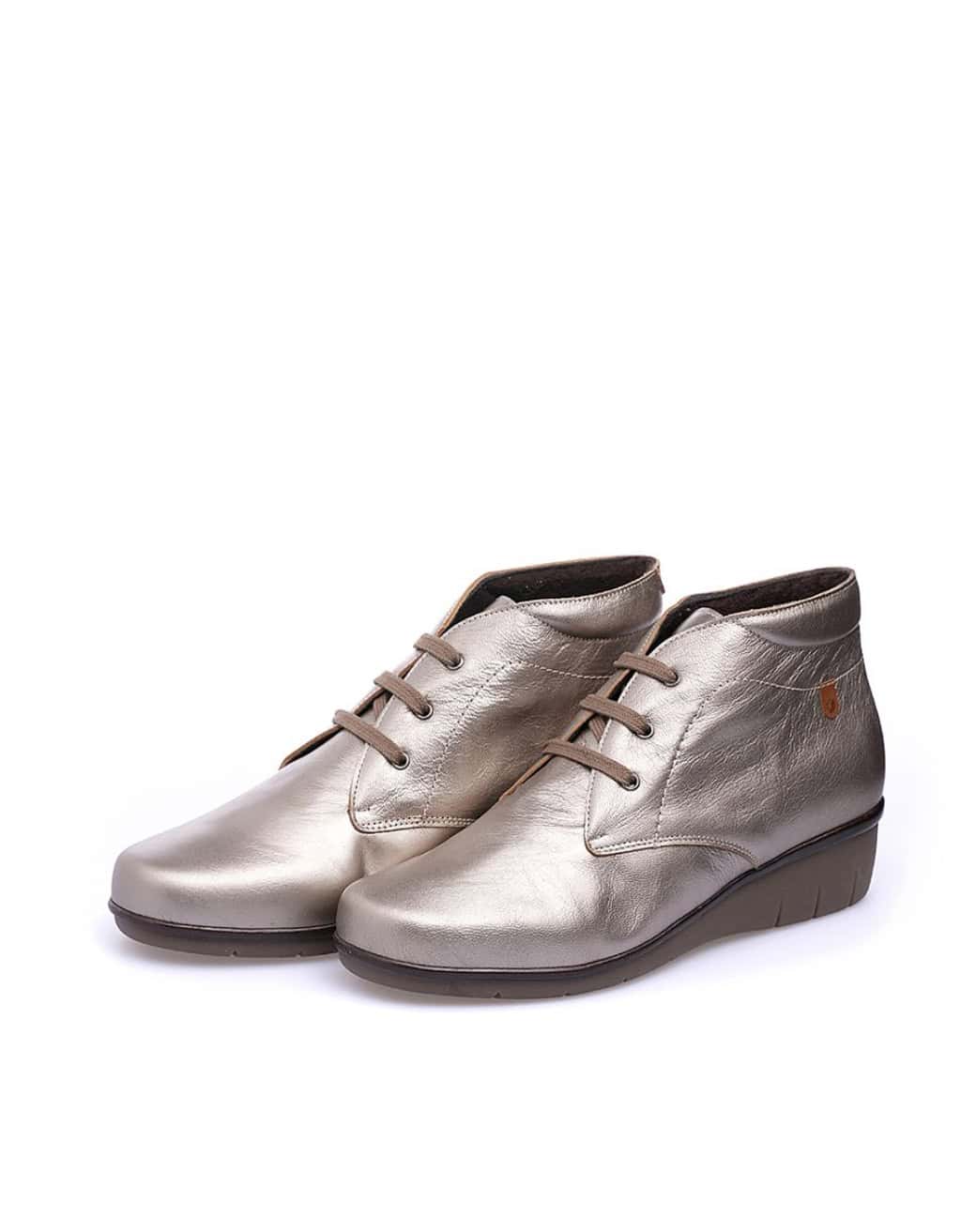 Botin para mujer de la marca Valerias, modelo 4567. Fabricado en piel de primera calidad. Cierre mediante cordonera. Cómoda cuña de 3 cm con suela antideslizante. La plantilla es extraible. Hecho en España. Un botín cómodo y fácil de combinar para tu día a día.