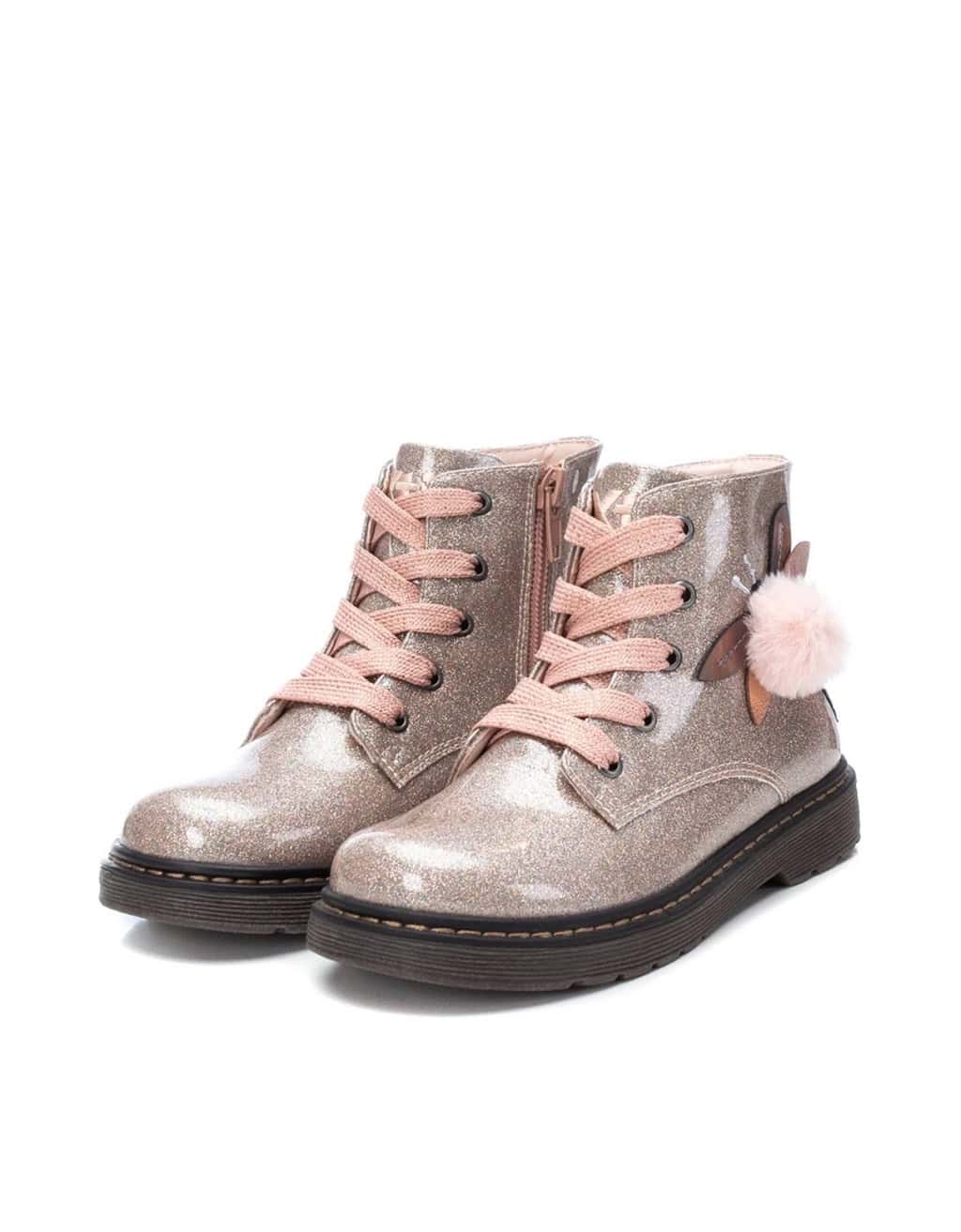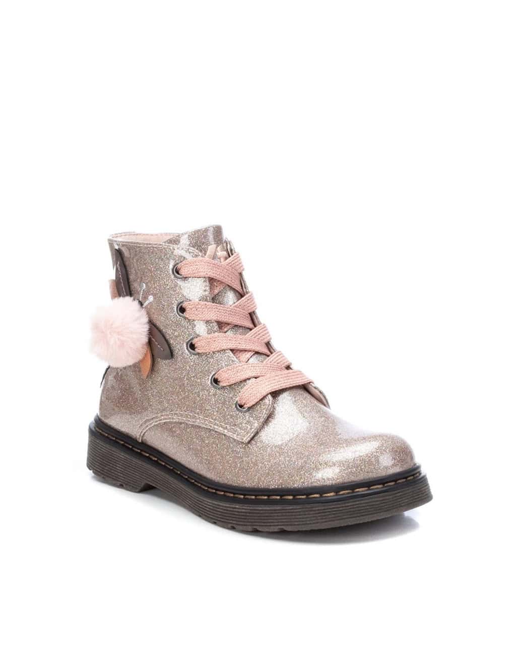 Botín para niña de la marca Xti, modelo 150212. Fabricado en charol. Con cremallera interior para facilitar el uso y comodidad. Bonita libelula con pompon decorativo, un toque súper divertido para las peques de la casa. Suela de goma antideslizante.