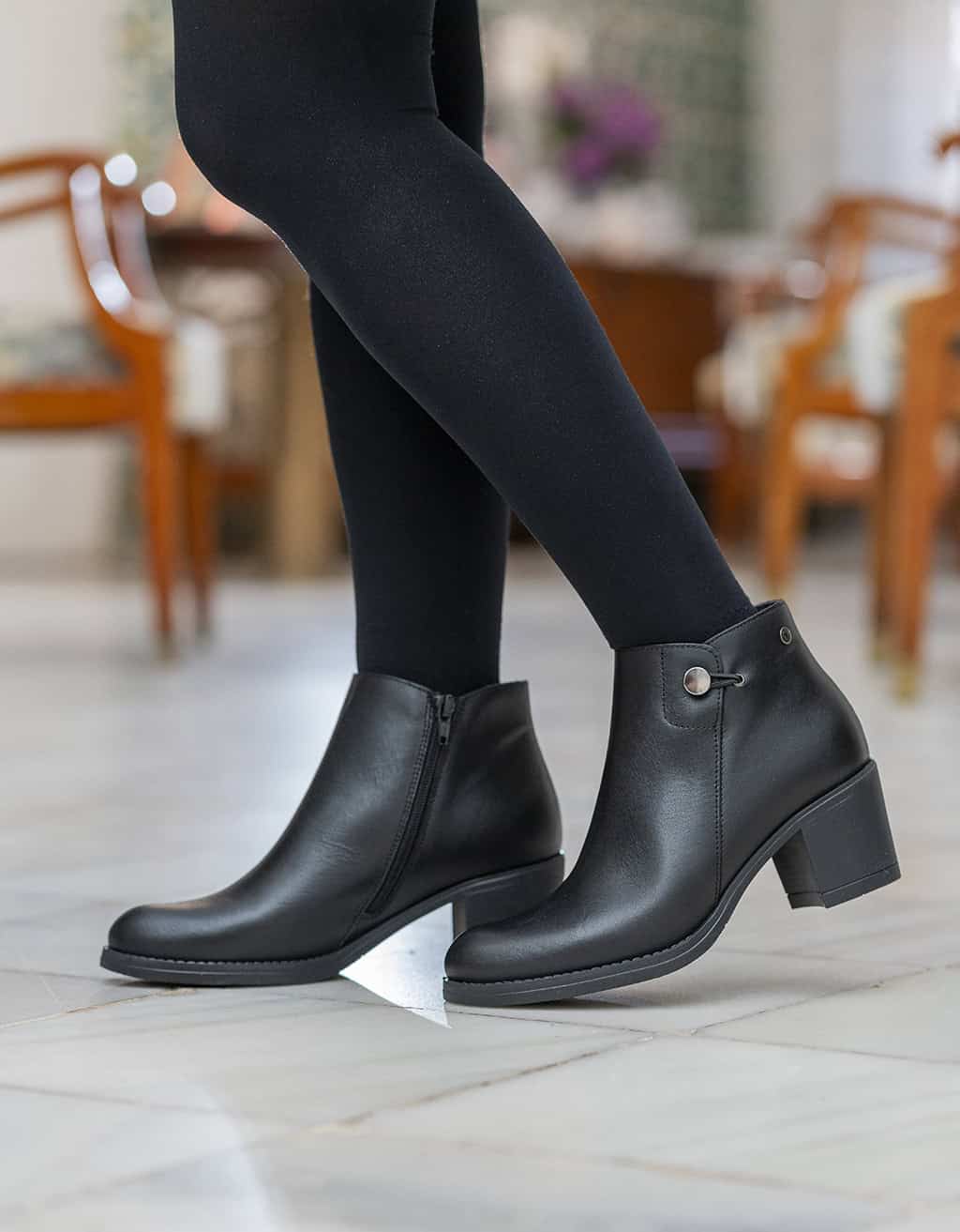 Botin para mujer con tacon de la Cervera Inspired, fabricado en España y realizado en piel de primera calidad. Cierre mediante cremallera lateral y adorno de tacha en su lateral. Están fabricados con piel de primera calidad. Suela de goma antideslizante con tacón de 6 centímetros de altura. Un botín cómodo y fácil de combinar para tu día a día.