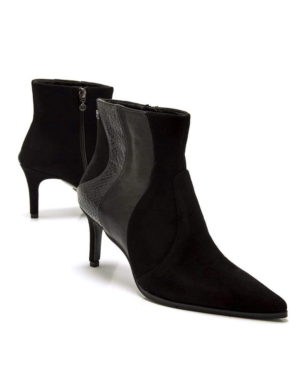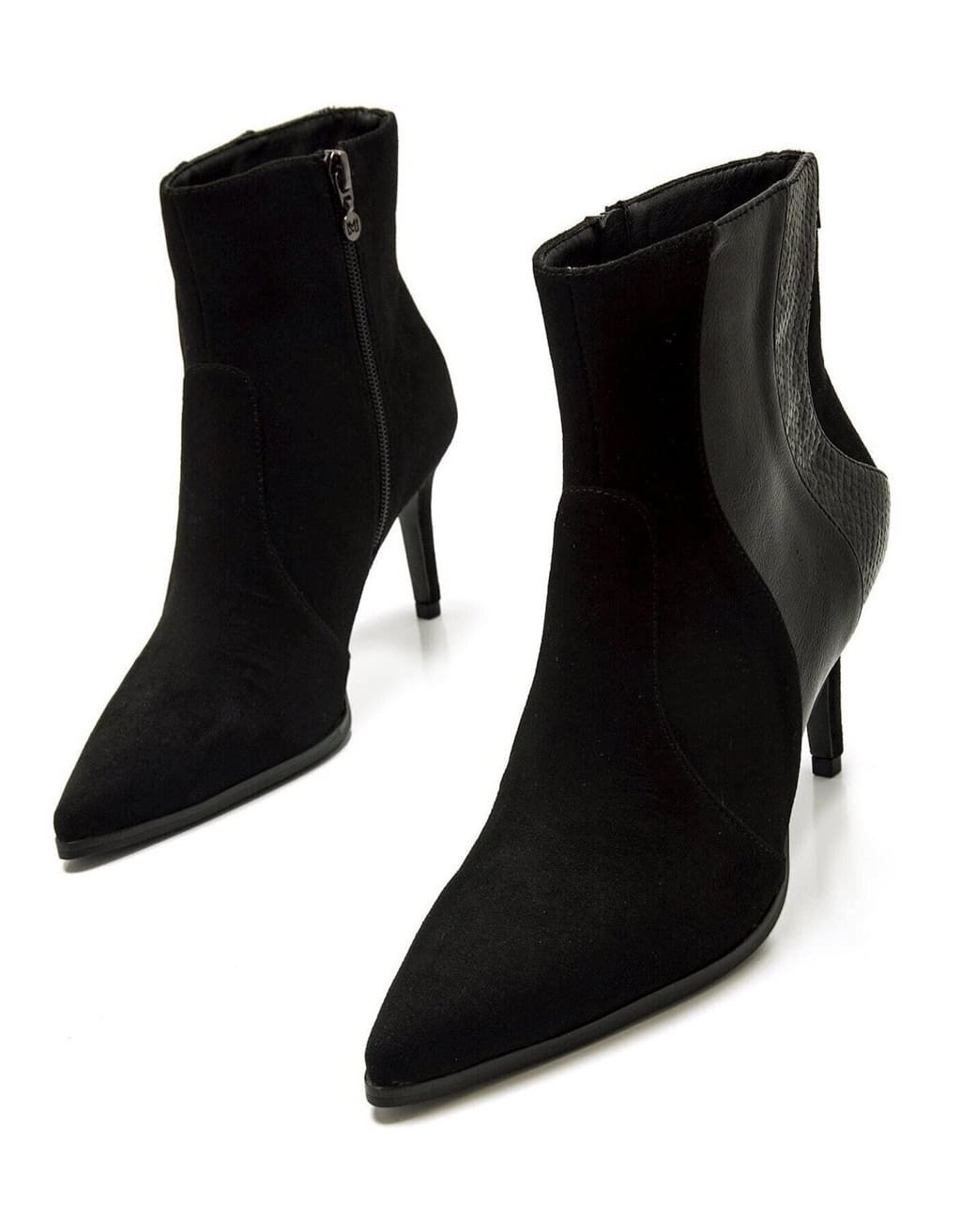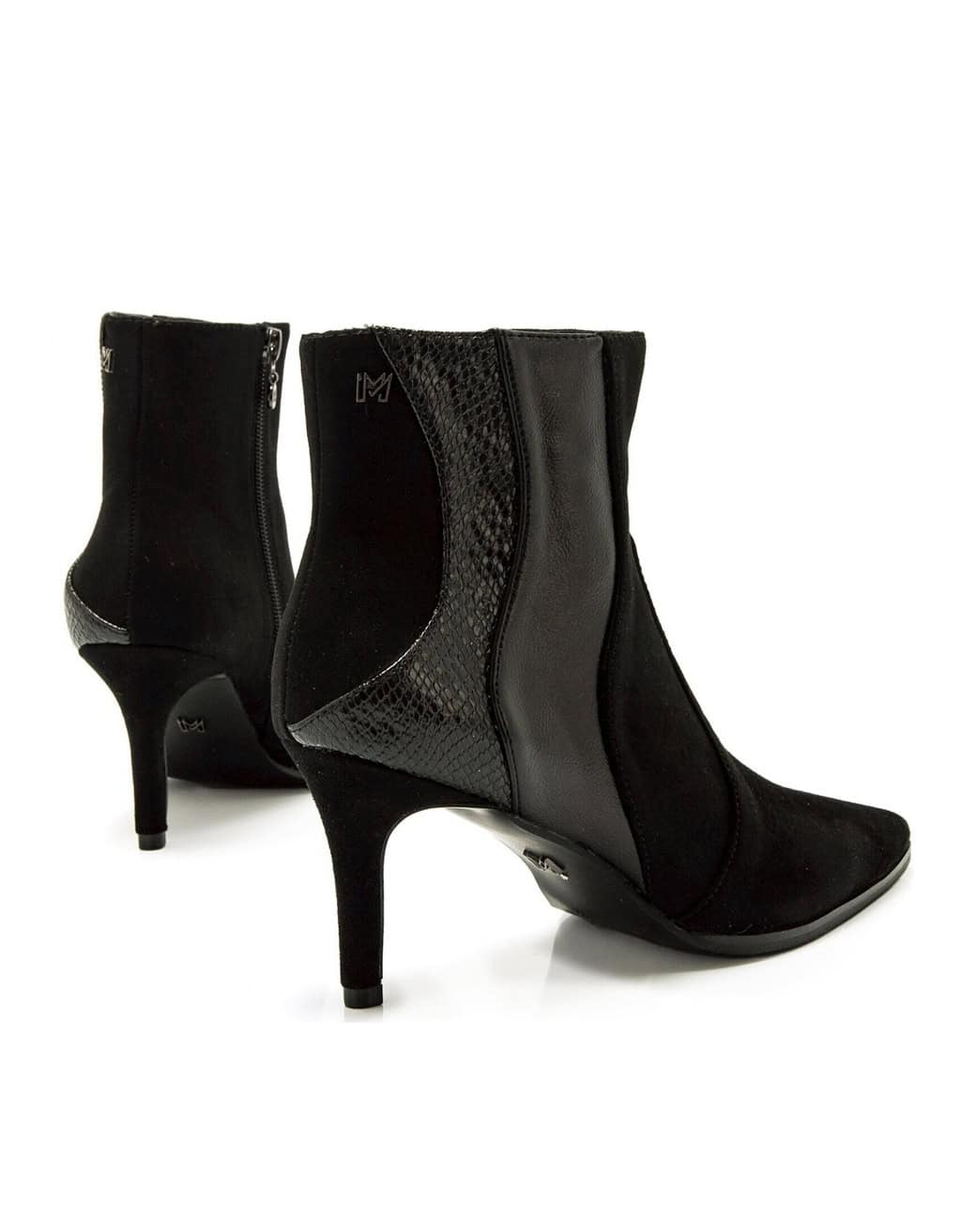 Botín con tacón para mujer de la marca Mariamare, modelo 63483. Fabricado en suave antelina. Cierre mediante cremallera interna. Destaca gracias a su diseño animal print de piel de serpiente a lo largo de la caña. Tacón fino y horma en punta. Como detalle incluye el logo de la marca en la parte superior de la caña. Será la opción más original para completar tus looks.