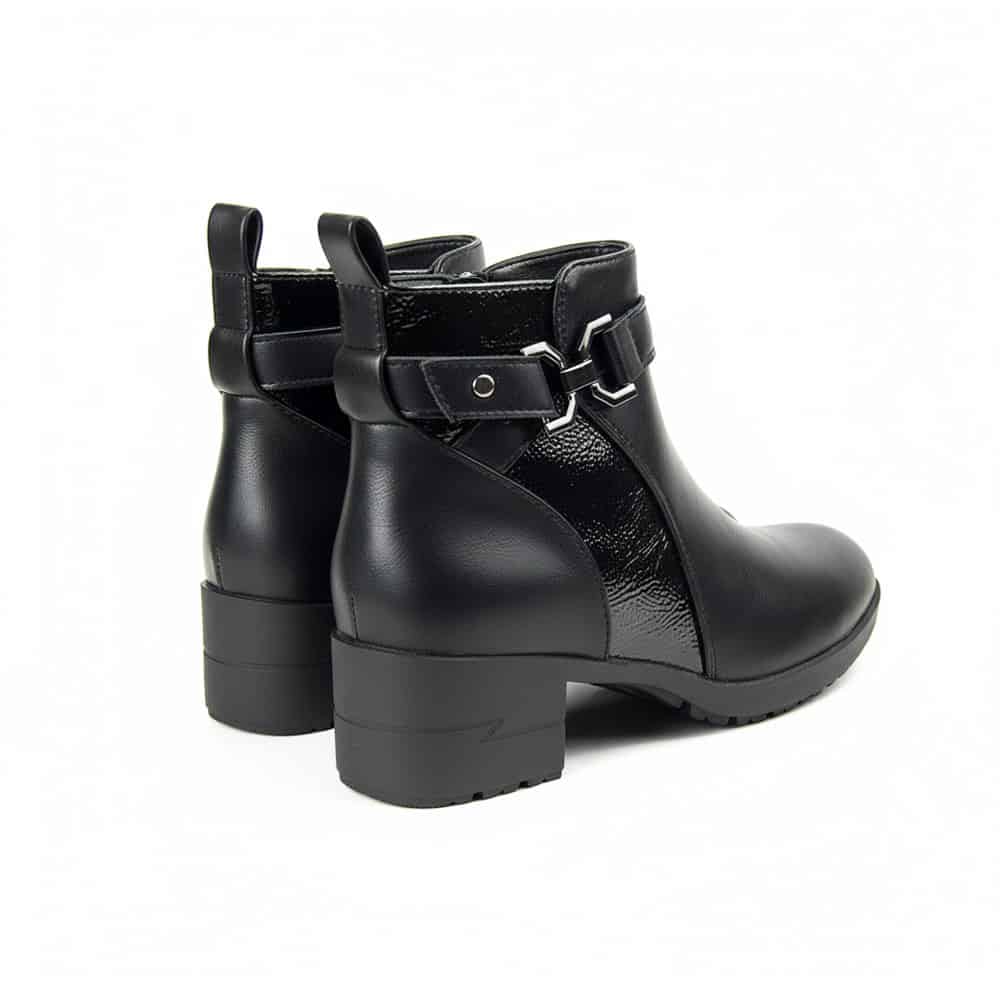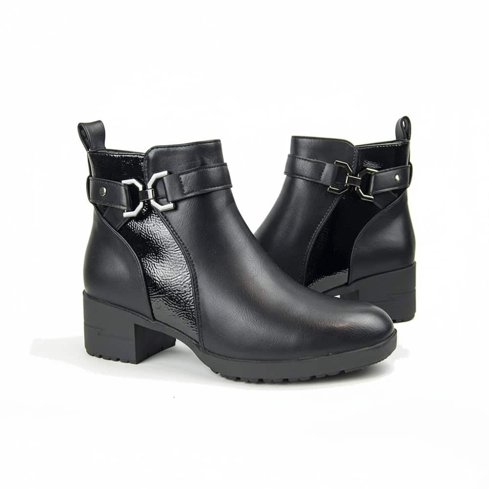 Las hebillas metalizadas decorativas y la forma del botín aportan un toque sofisticado, ideal para combinar con pantalones, faldas o vestidos, adaptándose a tu estilo diario.