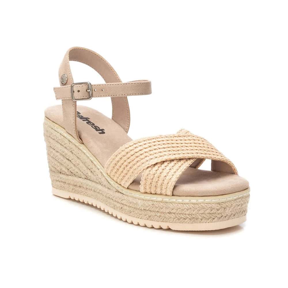 Cuñas Esparto Mujer Refresh 172650 combinan moda, altura y sostenibilidad en un diseño ideal para los días de verano. Fabricadas en rafia, con pala cruzada y pulsera al tobillo con cierre de hebilla, estas sandalias aportan un look natural y elegante. La cuña de 9 cm forrada en el mismo material, junto con su plataforma delantera, estiliza la figura sin renunciar a la comodidad. Además, cuentan con suela de goma antideslizante y están certificadas como producto vegano por la organización PETA.