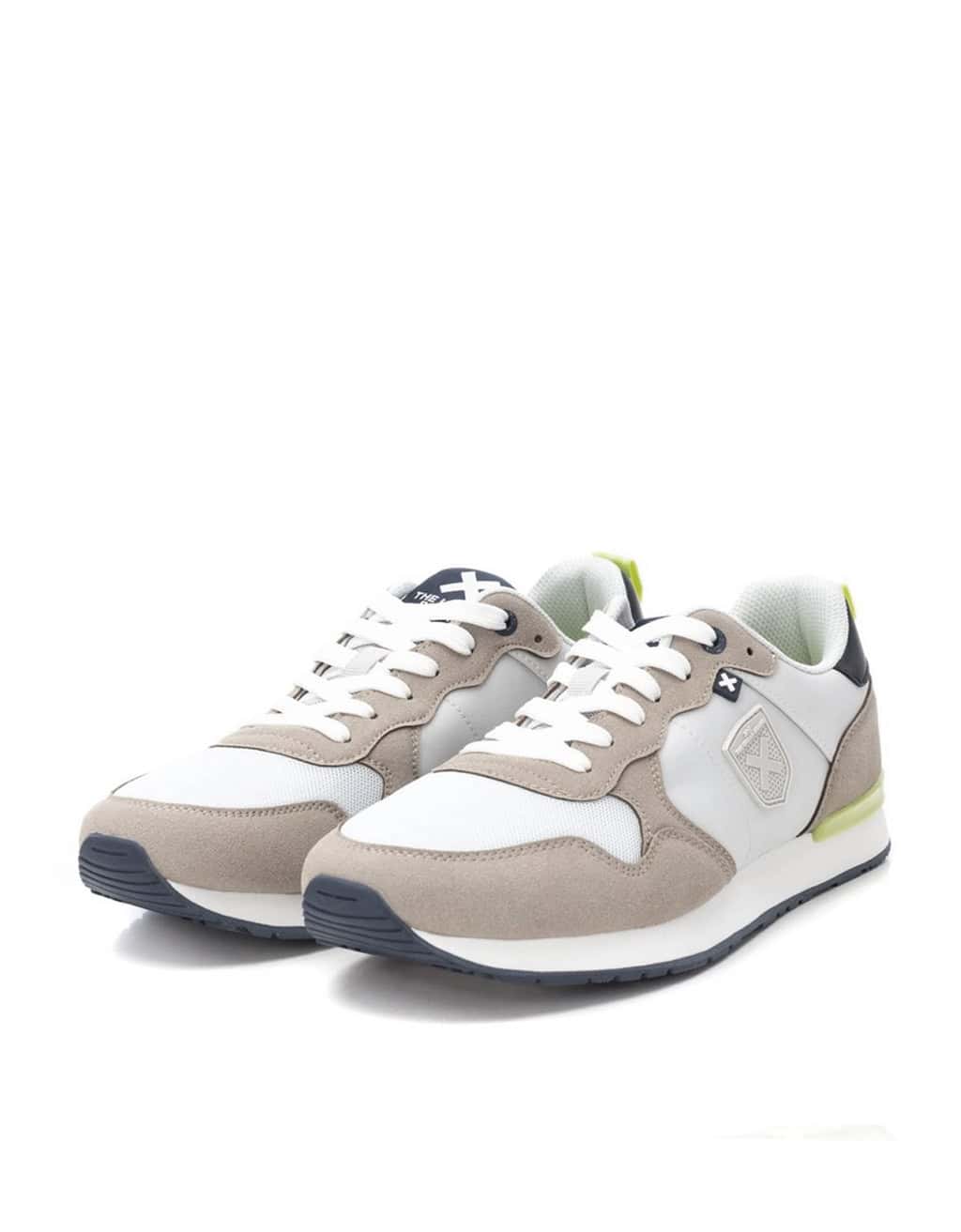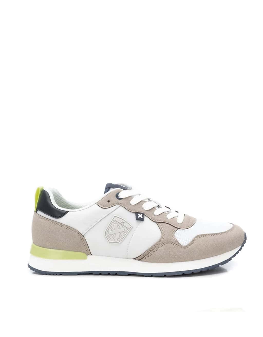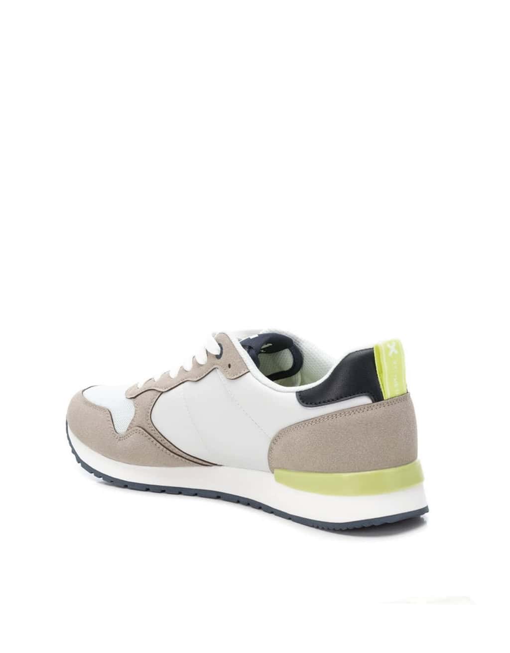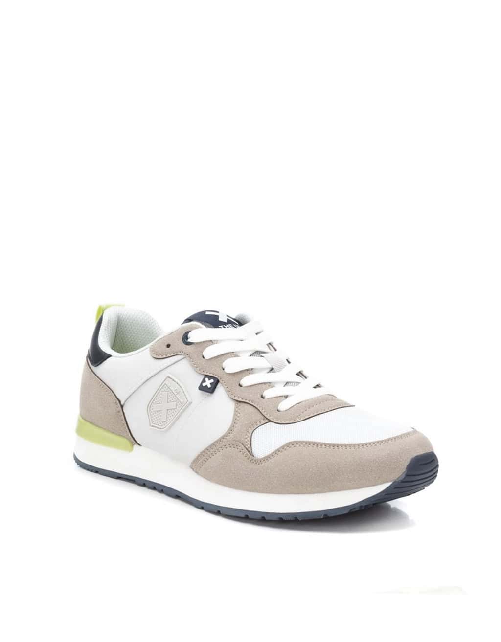 Deportivo de hombre, de la marca Xti. Fabricada en textil combinado con material que imita la piel. Cierre mediante cordones y tira trasera para facilitar el calce. Suela de goma antideslizante. Este modelo ha obtenido el certificado vegano por la organización mundial PETA (Organización de los derechos de los animales).