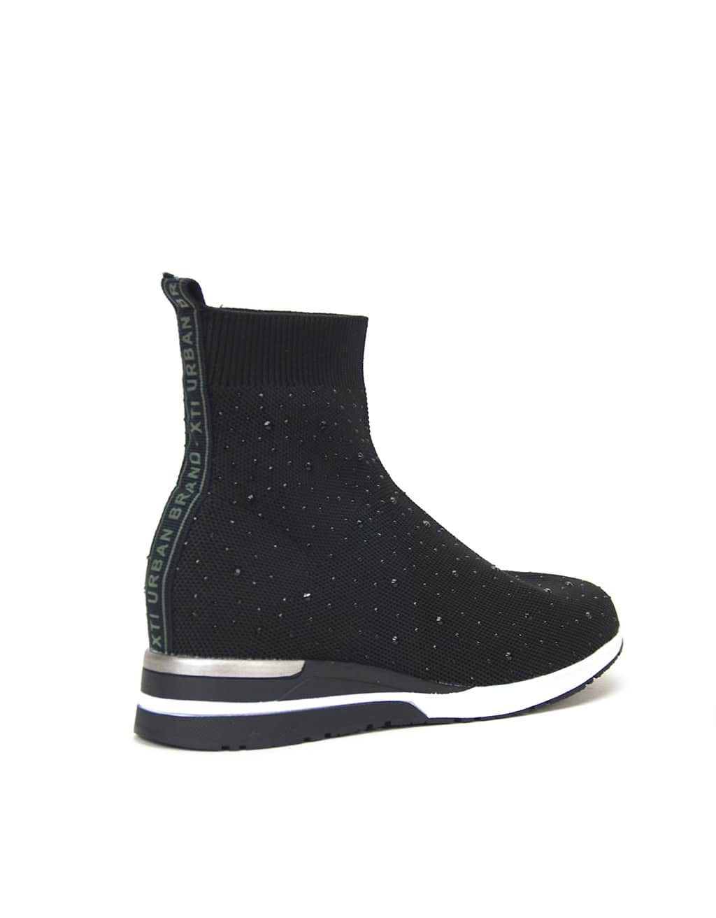 Botin deportivo de niña, marca Xti Kids. Fabricado en textil elástico para un mejor ajuste y comodidad. Tirador trasero para facilitar la puesta. Decorado con pedrería de fantasía que encantará a las más peques. Pequeña cuña bicolor con suela de goma antideslizante. Este modelo ha obtenido el certificado vegano por la organización mundial PETA (Organización de los derechos de los animales).