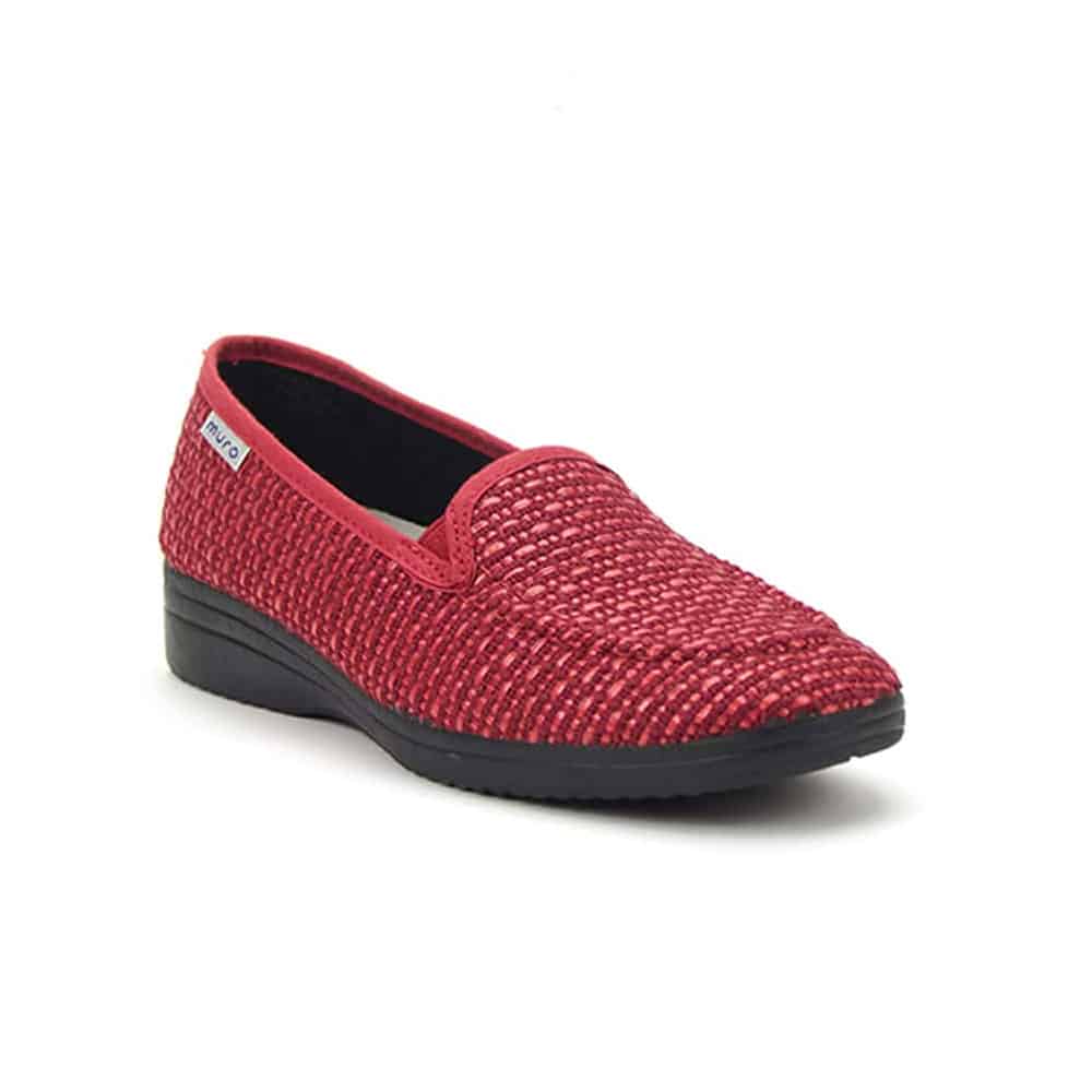 Mocasín Muro 805 Mujer Rojo es un zapato cómodo, ligero y flexible, ideal para el uso diario. Un modelo fácil de poner que se adapta al pie y permite caminar durante horas con total confort. Realizada en textil rafia con ribete al tono y suela antideslizante. Fabricado en España. Plantilla extraible.