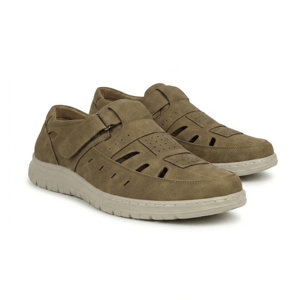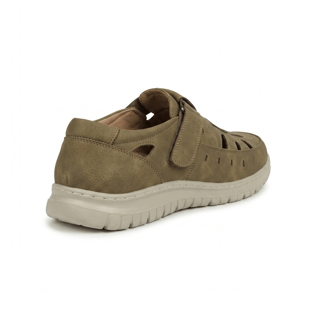 Sandalia cerrada hombre marrón Cervera Inspired 5288 destaca por su ajuste con velcro y diseño práctico para el verano. Fabricado en material que imita a la piel. Plantilla extraíble y suela antideslizante.