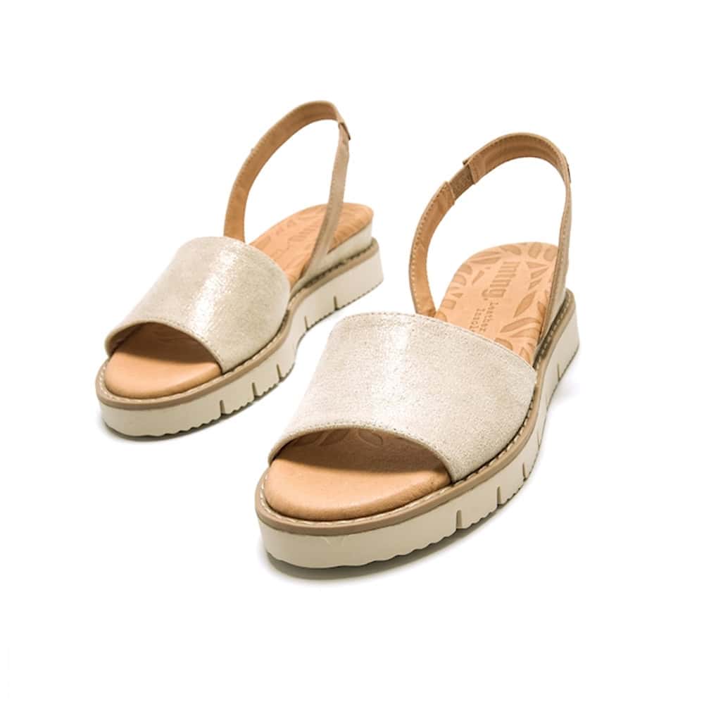 Sandalia Cuña Mujer Mustang 53282, modelo Siren de Mtng, combina lo mejor del diseño tradicional con las tendencias más actuales. De estilo menorquina y con un acabado metalizado llamativo, esta sandalia destaca por su línea minimalista que se adapta perfectamente a cualquier outfit veraniego. La tira frontal abierta cubre el empeine con elegancia, mientras que la tira elástica en el talón proporciona un ajuste seguro y facilita el calce. Todo ello sobre una cuña sutil que aporta un extra de altura sin renunciar a la comodidad.