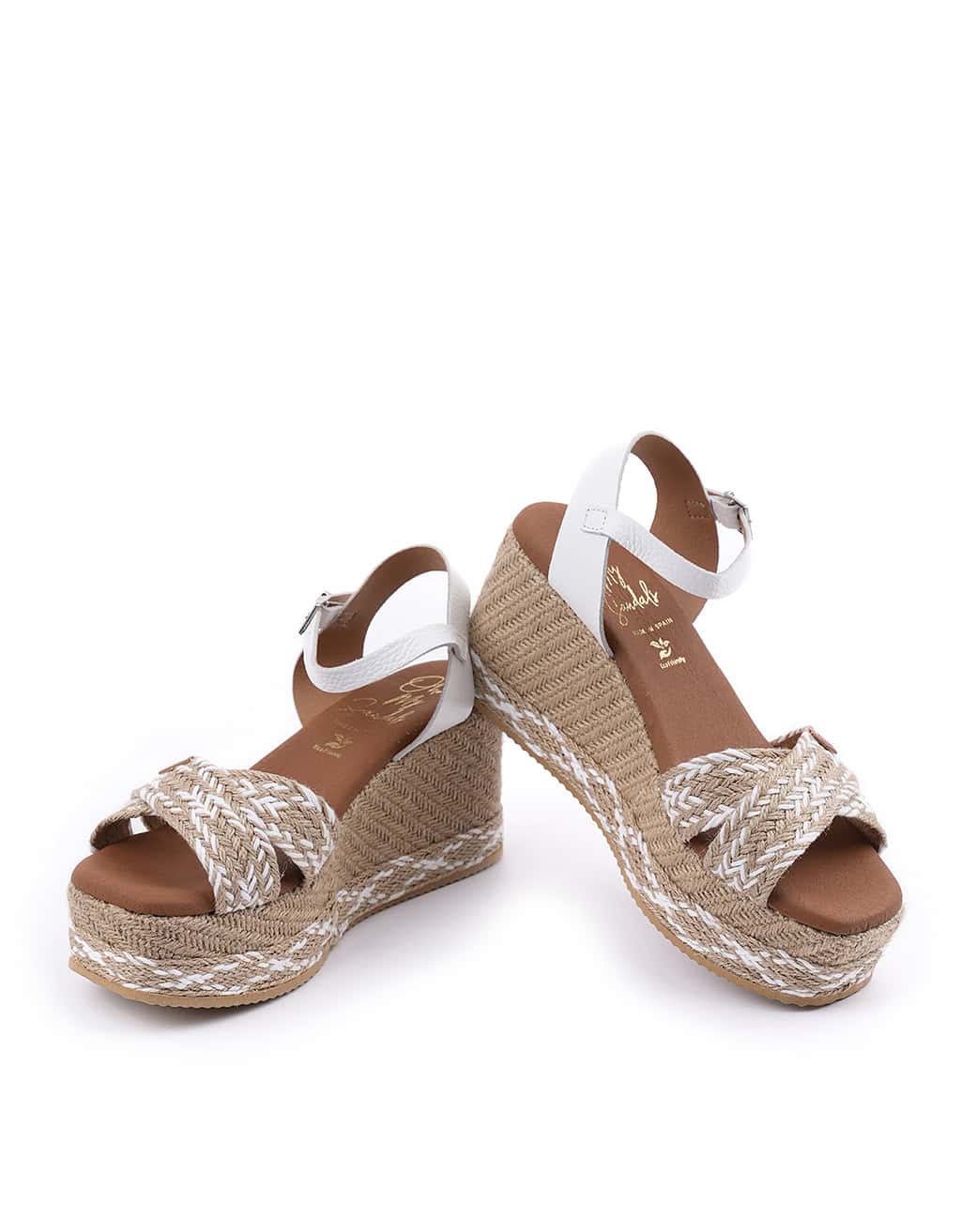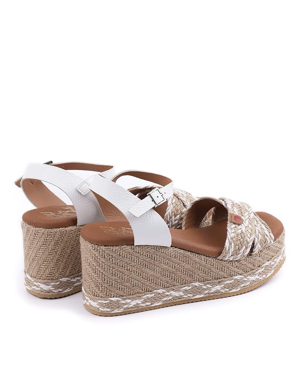 Sandalia con cuña para mujer, de la marca Oh My Sandals. Realizada en piel de primera calidad combinado con materiales textiles. Suela de poliuretano super ligera con plataforma de 4 cm para mayor comodidad en la planta del pie. Cierre mediante pulsera tobillera con hebilla. Plantillas de gel con Memory Foam de textura ligera, suave y elástica, que le proporciona una gran sensación de confort a sus pies, minimizando el impacto al andar y protegiendo sus articulaciones. Hechas en España 100%.