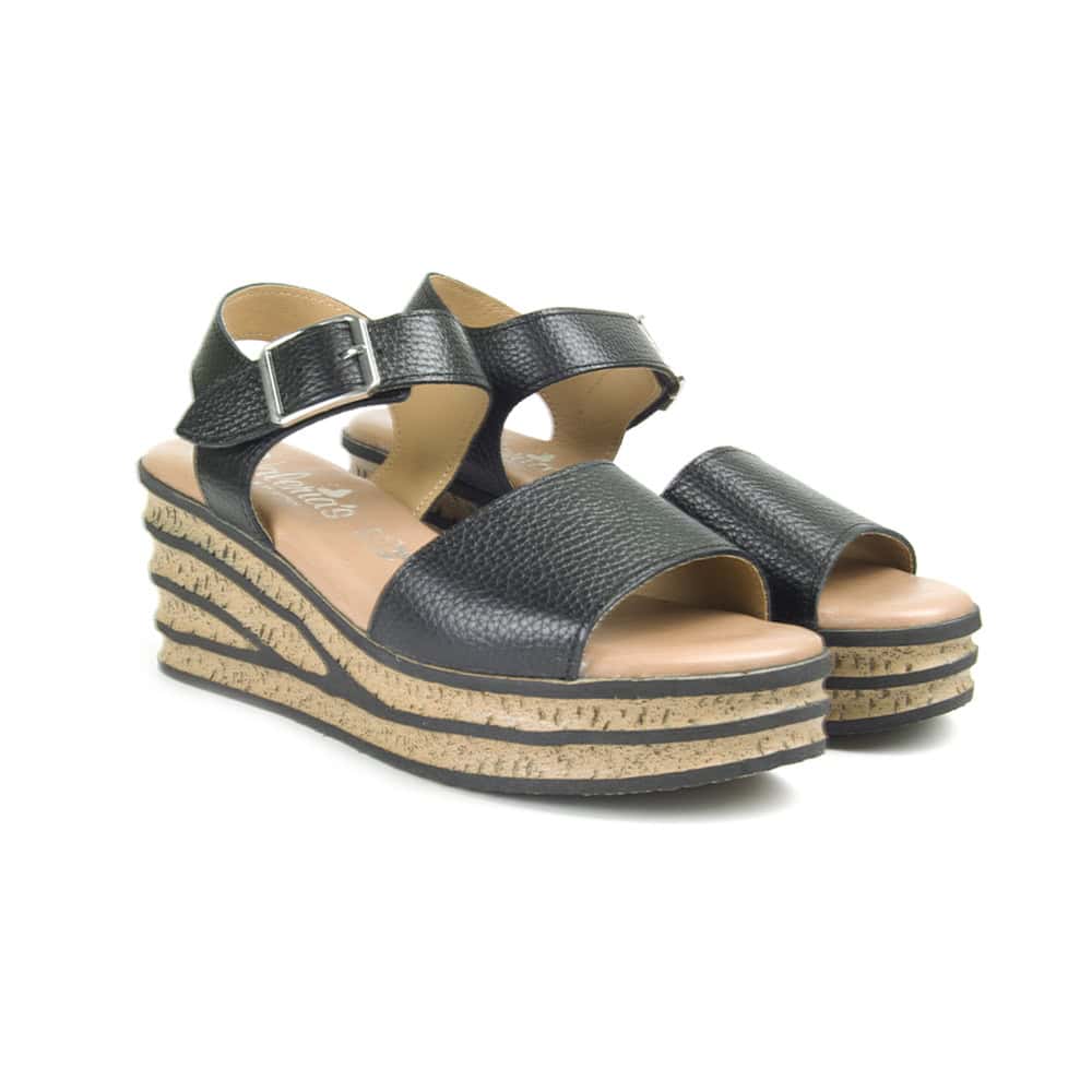 No querrás quitártelas. La Sandalia Cuña Negra Mujer Valerias 1964 es tu aliada para lucir con altura y comodidad sin esfuerzo.