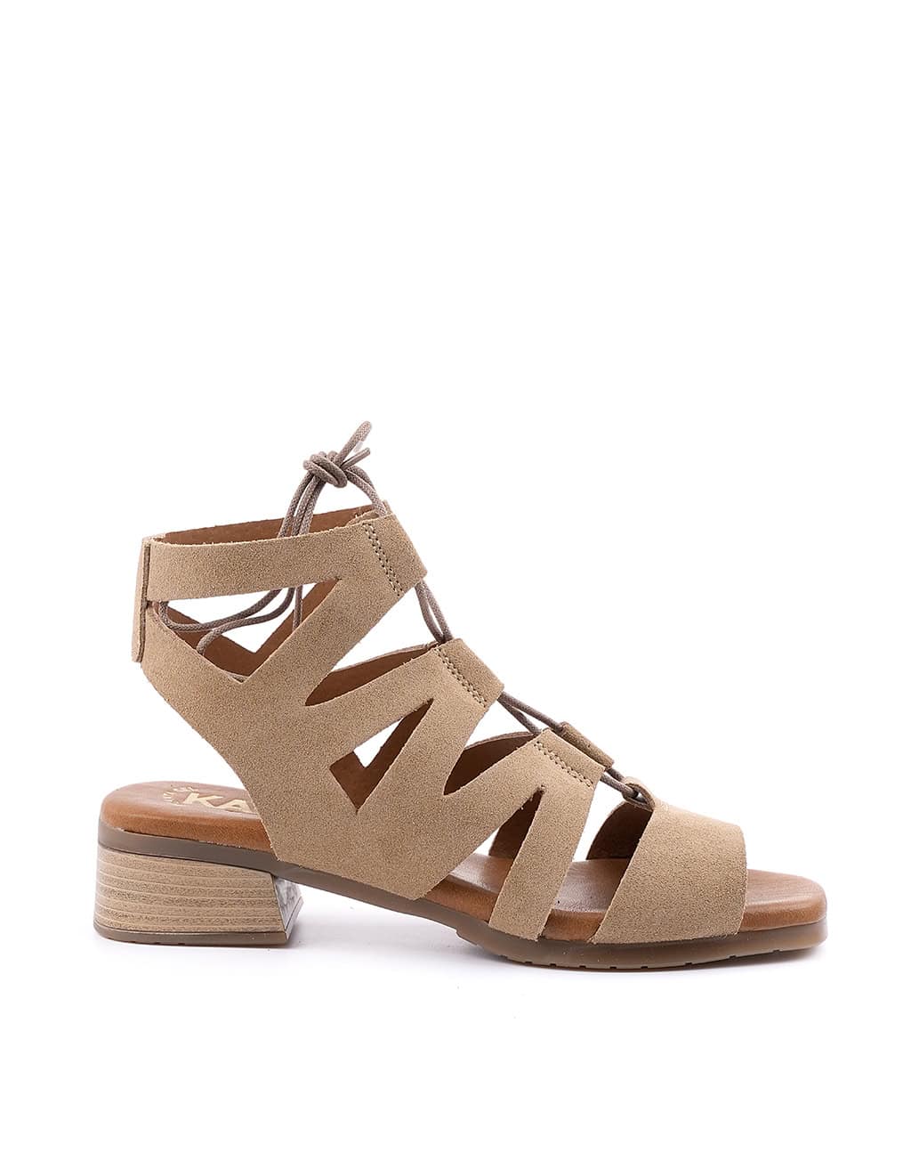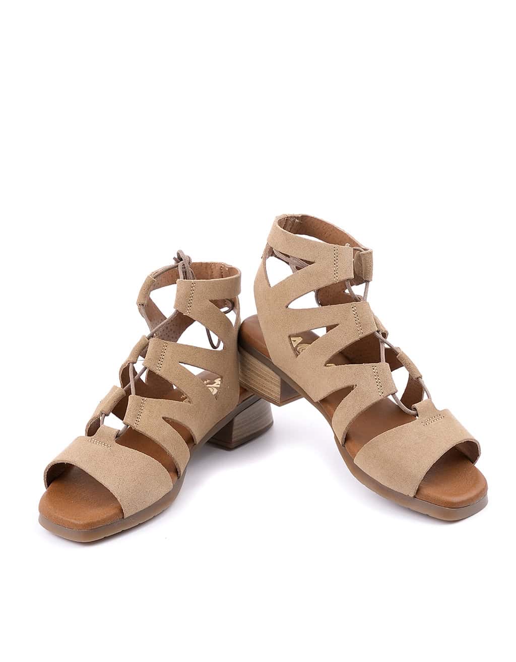 Sandalia con tacon para mujer, de la marca Cervera Inspired. Realizada en piel de ante de primera calidad. Modelo diseñado por varias tiras formando una romana. Plantilla acolchada para una mayor comodidad que te aportará comodidad en tu día a día. Cierre mediante de cordones. Hechas en España 100%.