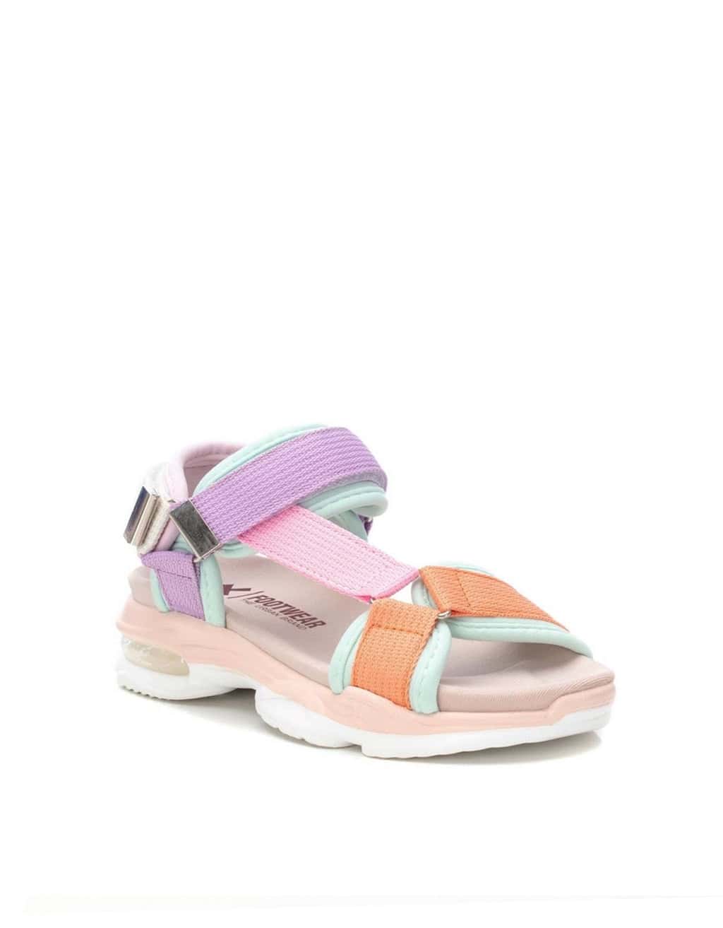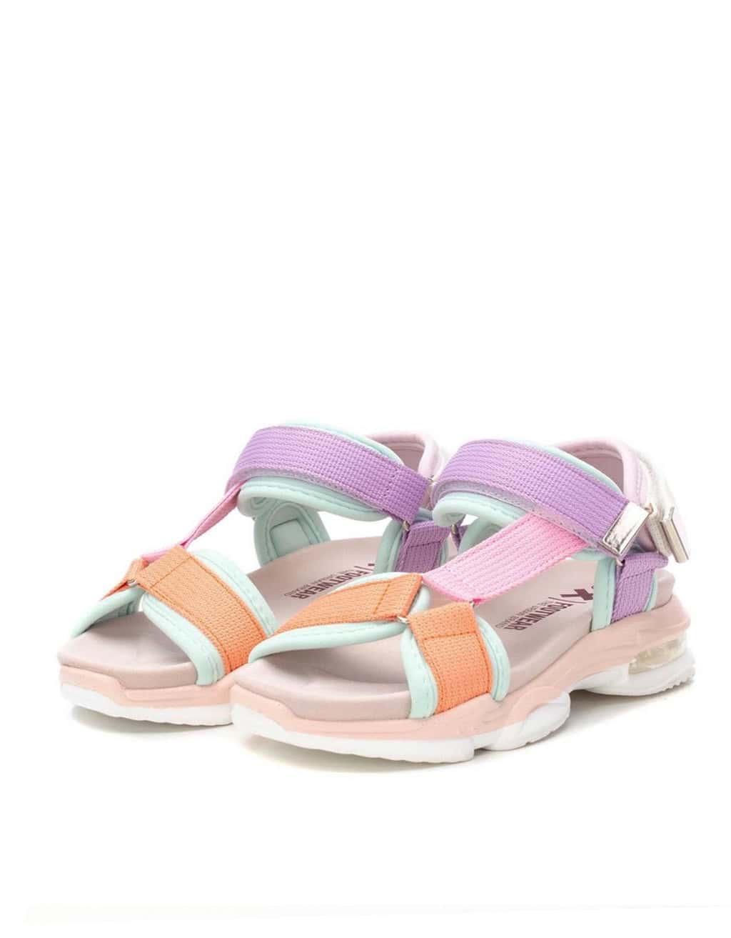 Sandalia de niña. Marca Xti Kids. Fabricada en material textil. Tiras que ajustan el tobillo mediante velcro. Gruesa suela de goma antideslizante con cámara de aire, ideal para las mejores aventuras de esta nueva temporada. Este modelo a obtenido el certificado vegano por la organización mundial PETA (Organización de los derechos de los animales).