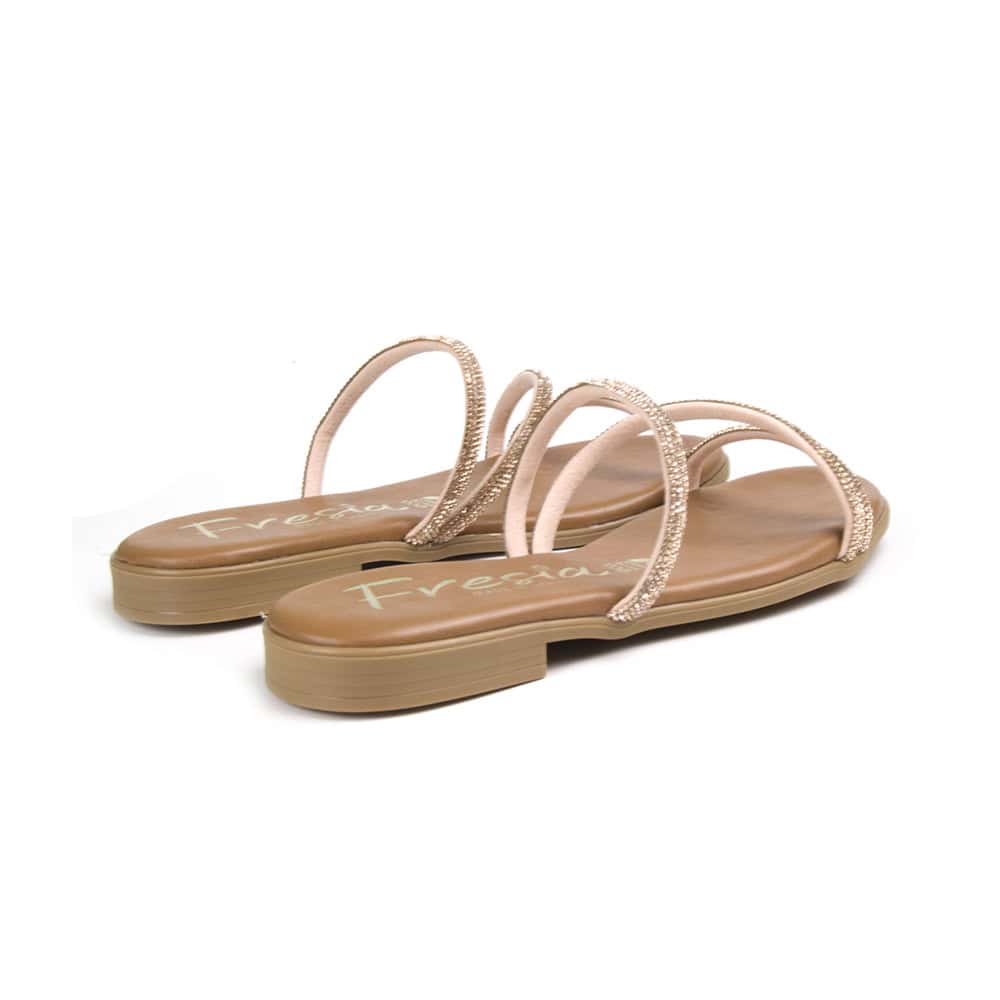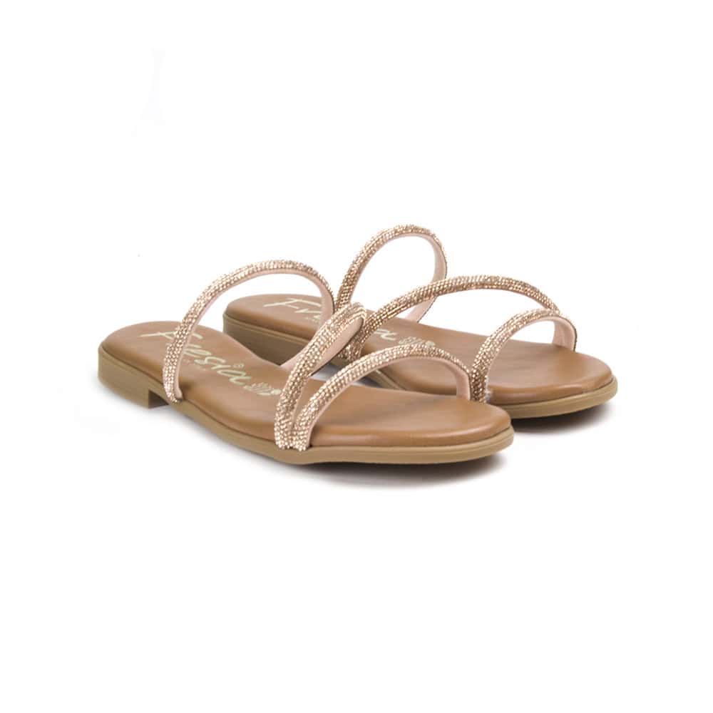 La Sandalia Plana Cobre Mujer Fresia 468 es la elección perfecta para quienes buscan un calzado veraniego cómodo y con mucho estilo. Con un diseño tipo slide fácil de calzar, estas sandalias destacan por sus tiras finas adornadas con brillantes, que aportan un toque de luz y sofisticación a cualquier look. Ya sea para un paseo por la ciudad, una tarde con amigas o un día en la playa, Fresia 468 es ese modelo que combina moda y confort a la perfección.