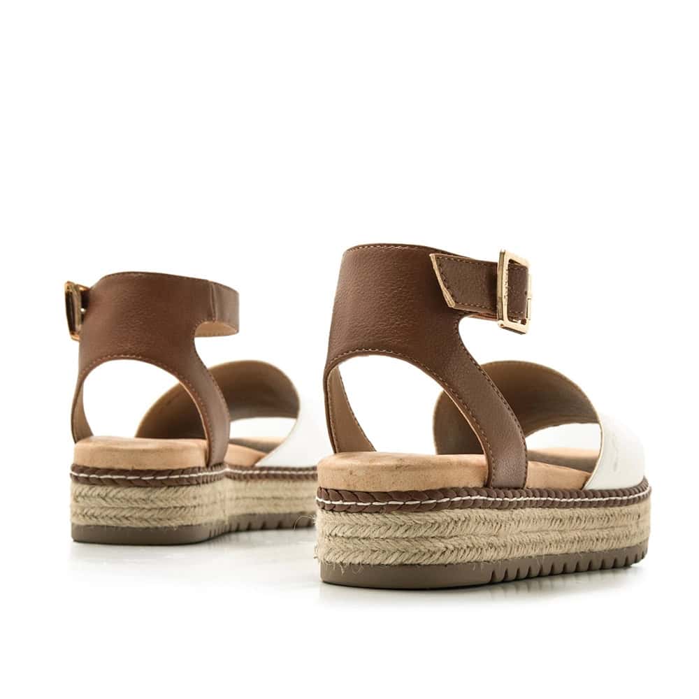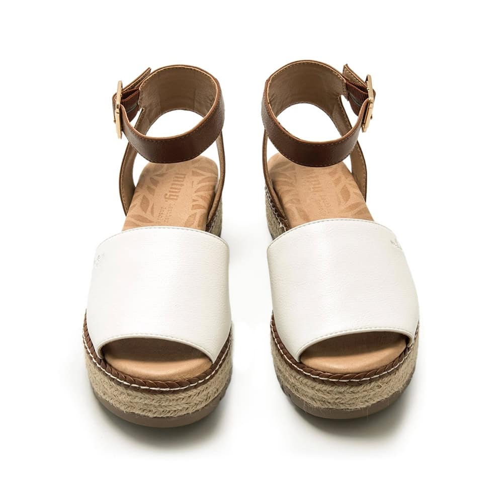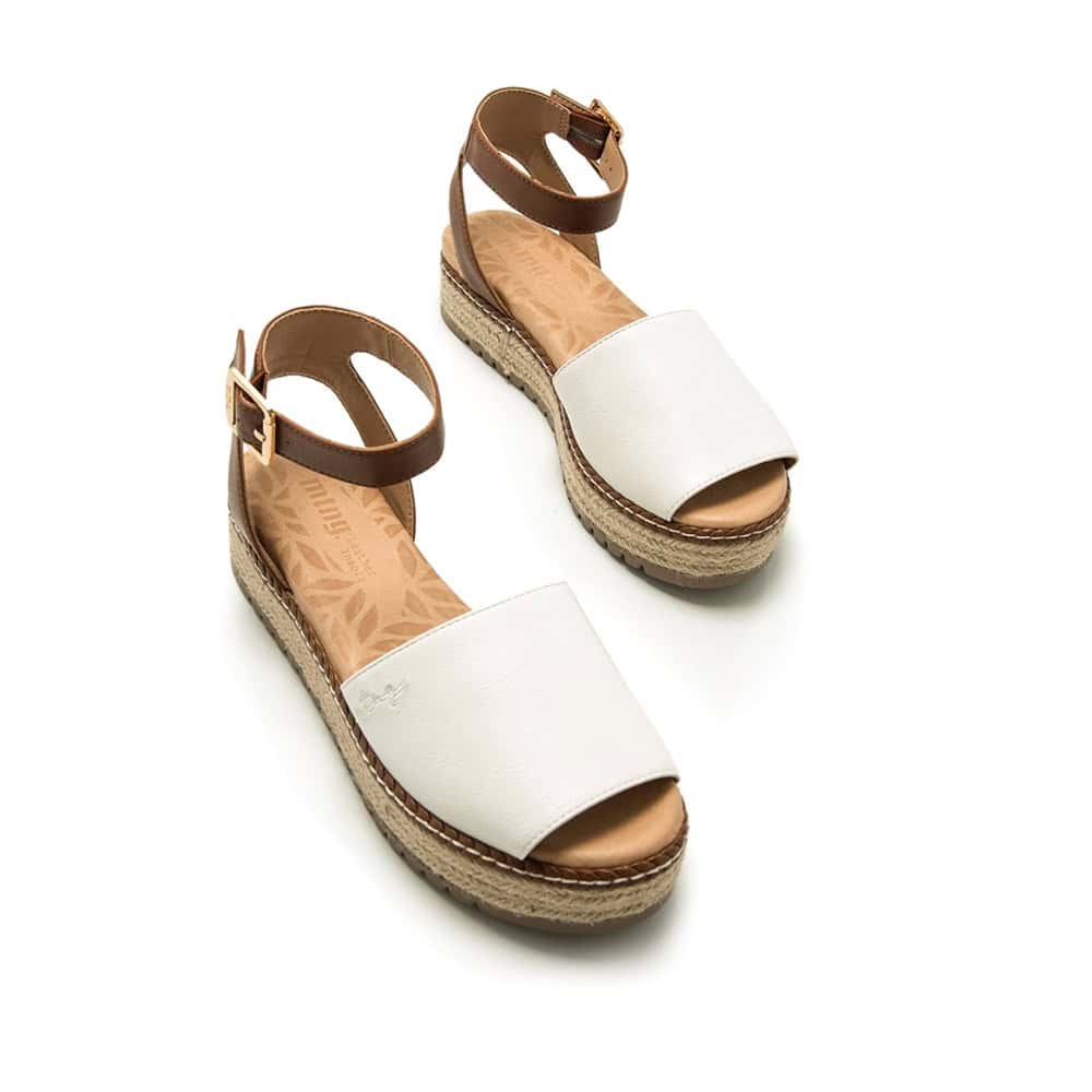 Sandalia Plana Mujer Mustang Amelie es la fusión ideal entre comodidad, frescura y tendencia. Con un diseño inspirado en las clásicas menorquinas, esta sandalia combina una banda pala blanca en la parte delantera con una tira trasera ajustable en tono marrón, logrando un contraste elegante y atemporal. Su plataforma forrada en yute le aporta un aire natural, perfecto para los días de verano. Ideal para llevar con todo tipo de outfits, es una sandalia pensada para destacar con sencillez.