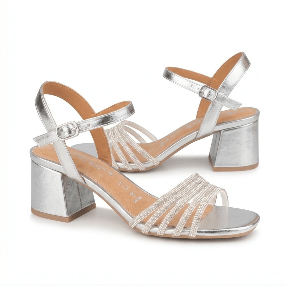 El acabado plateado convierte estas sandalias en una opción perfecta para bodas, celebraciones o estilismos de invitada.