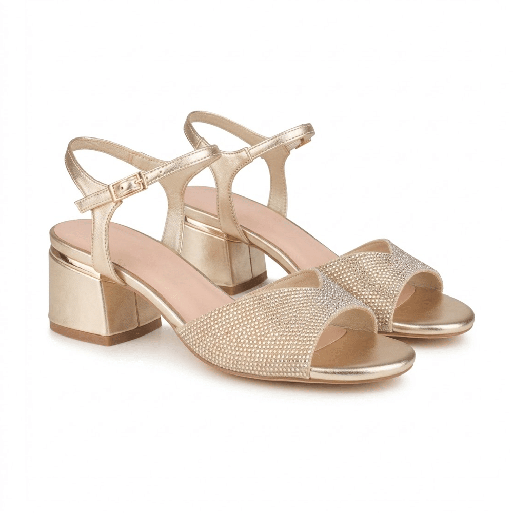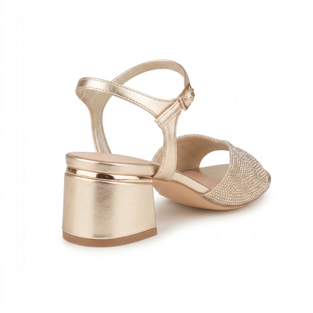 El acabado dorado aporta luminosidad y sofisticación, convirtiendo estas sandalias en una opción perfecta para bodas, celebraciones o looks de invitada.