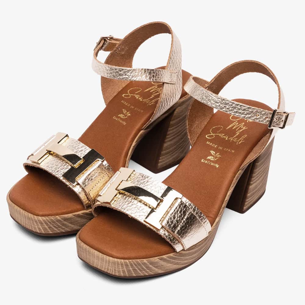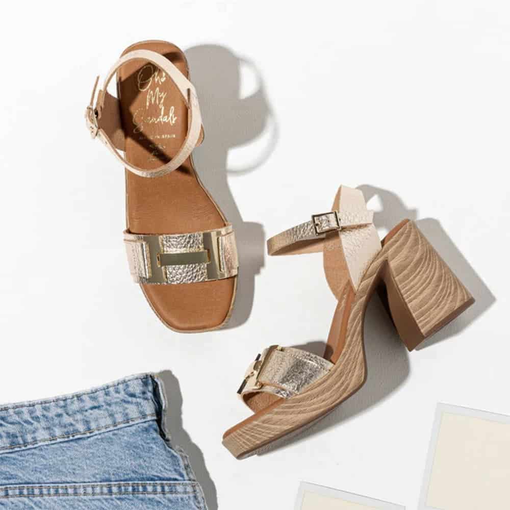Disfruta del diseño y la comodidad que solo un calzado hecho en España puede ofrecer. La Sandalia Tacón Mujer Oh My Sandals Rosalia Champan será tu aliada perfecta en cada celebración.