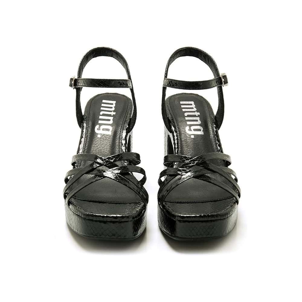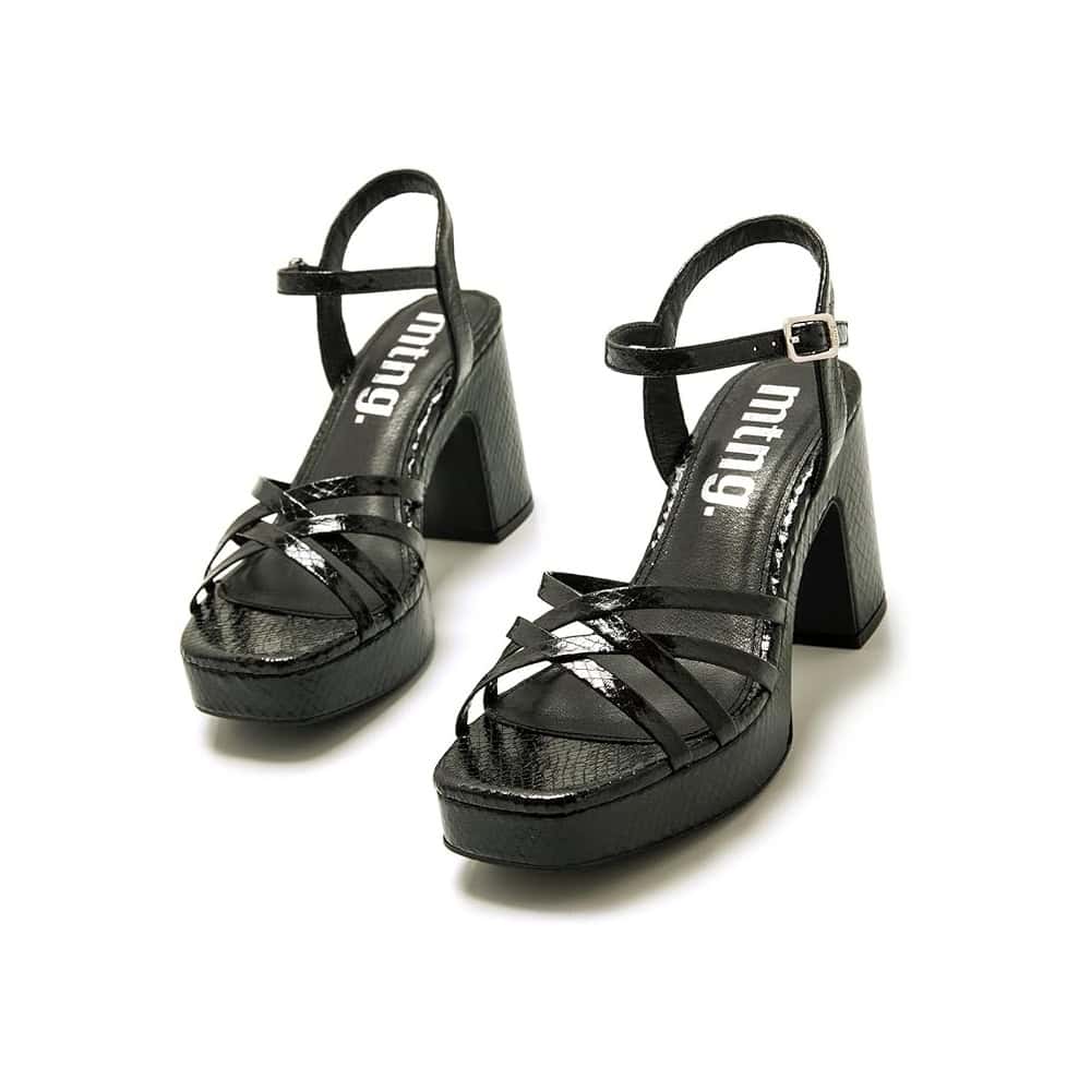 Porque esta sandalia combina la elegancia del color negro con la comodidad de un diseño pensado para ajustarse perfectamente al pie. Su textura tipo piel de serpiente le da un aire moderno y sofisticado, mientras que la sujeción al tobillo aporta seguridad en cada paso. Con la garantía de calidad de la marca Mustang, es la elección ideal para quienes buscan lucir espectaculares sin sacrificar el confort.