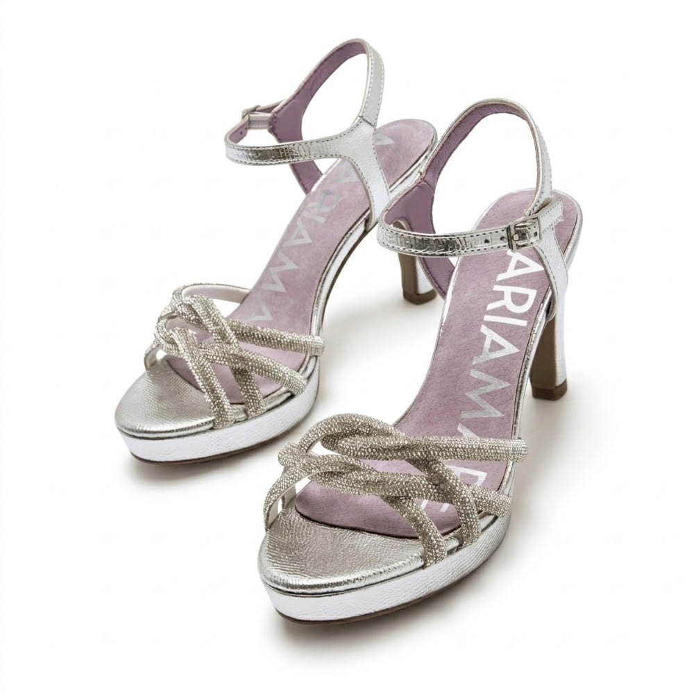 Las sandalias fiesta plata mujer Mariamare Acate 68687 combinan elegancia y altura con tacón de 10 cm, plataforma y plantilla Airfit.