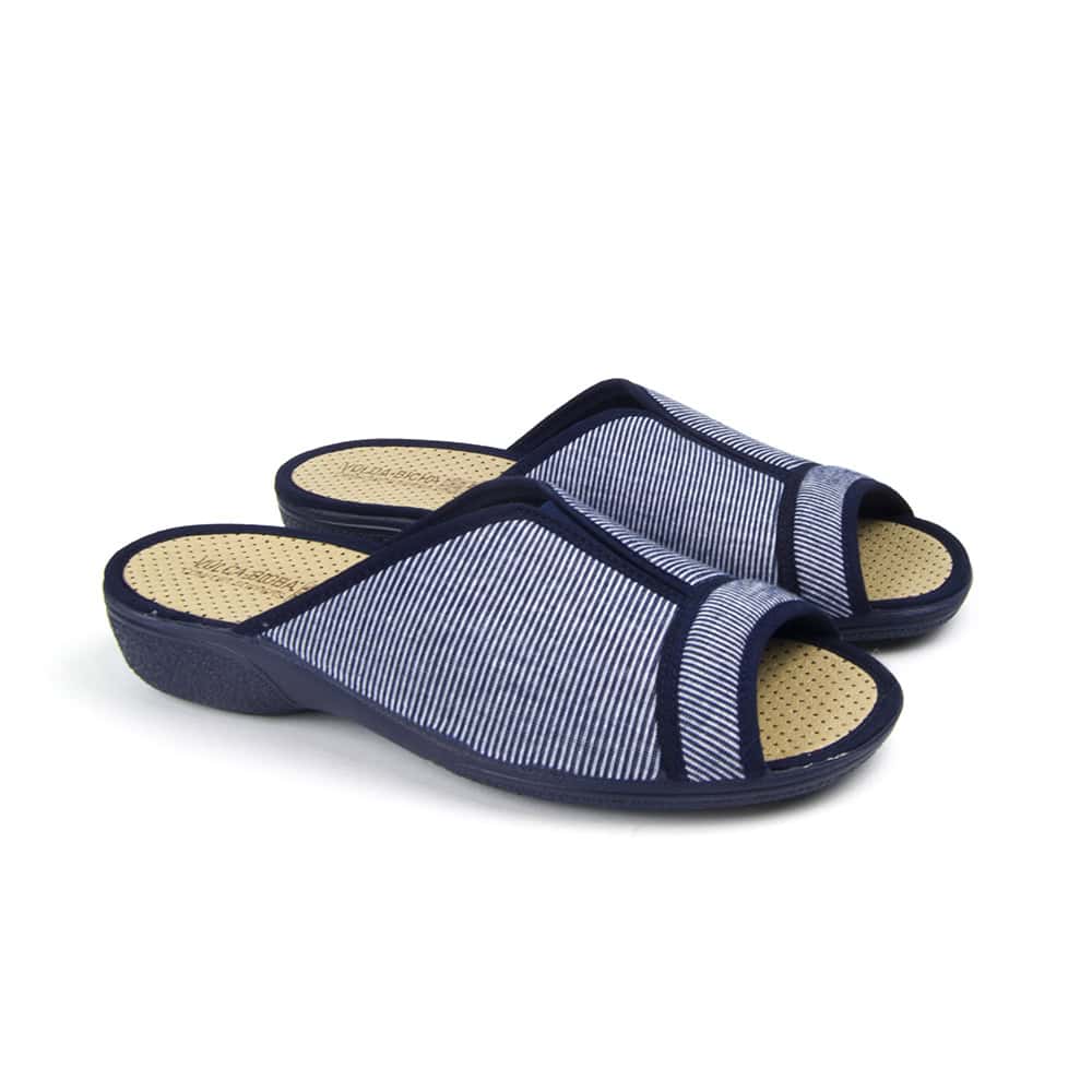 Zapatilla de casa con cuña de mujer de la marca Vulcabicha, referencia 1330. Fabricada en un suave tejido de verano. Forro interior muy suave y fresco con elástico para mayor apertura. Son flexibles, ligeras y fáciles de calzar. Suela antideslizante. Fabricado en España por la marca Vulcabicha.