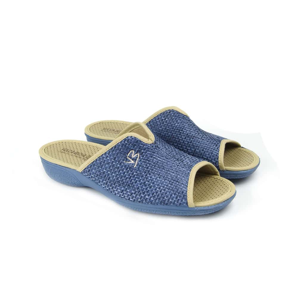 Zapatilla de casa con cuña de mujer de la marca Vulcabicha, referencia 1951. Fabricada en un suave tejido de verano. Forro interior muy suave y fresco con elástico para mayor apertura. Son flexibles, ligeras y fáciles de calzar. Suela antideslizante. Fabricado en España por la marca Vulcabicha.