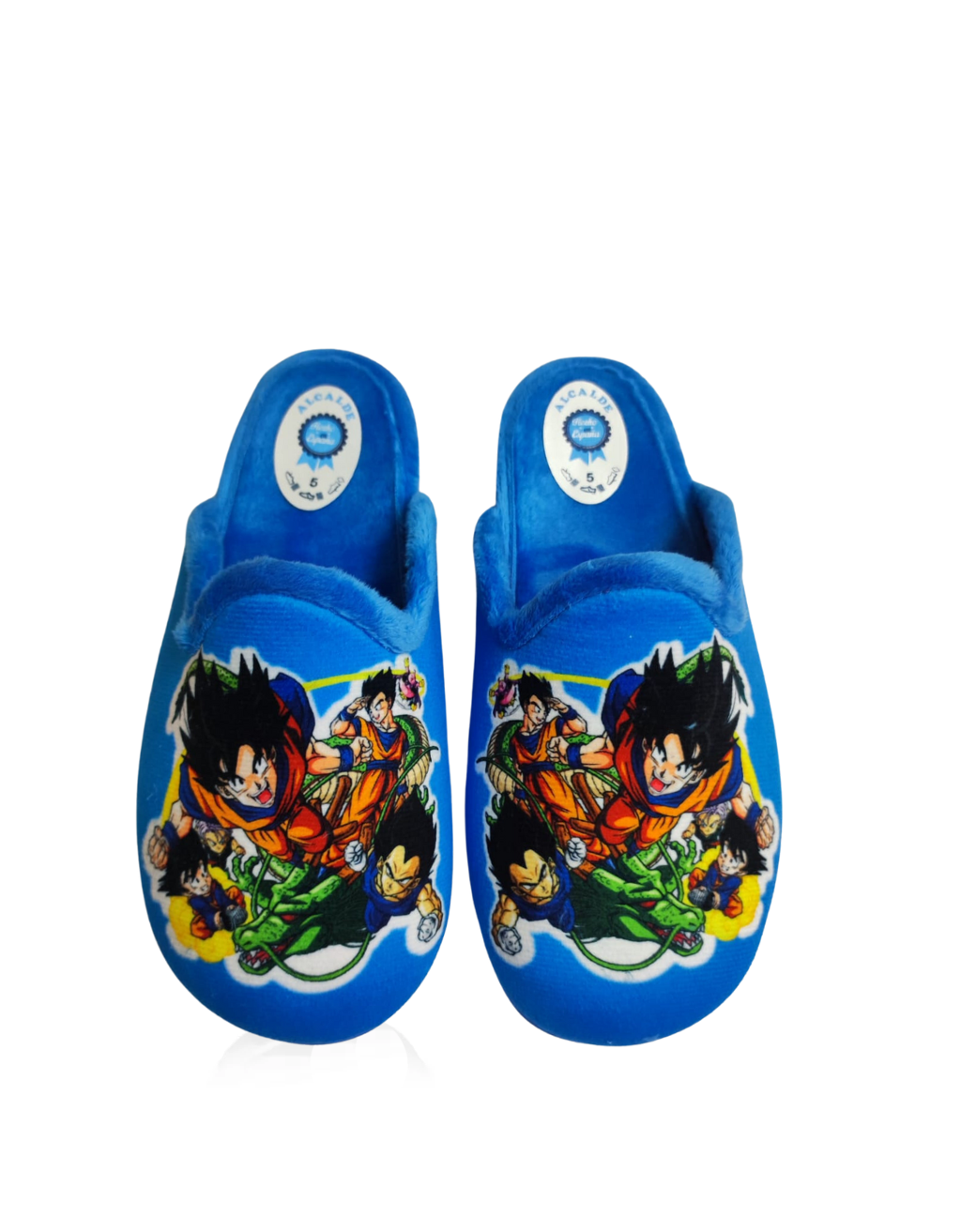 Zapatilla de casa de niño Dragon Ball de la marca Alcalde, referencia 4658. Fabricada en un suave tejido invernal. Forro interior textil de muy confortable y caliente. Fabricado en España. Son flexibles, ligeras y fáciles de calzar. Suela antideslizante.