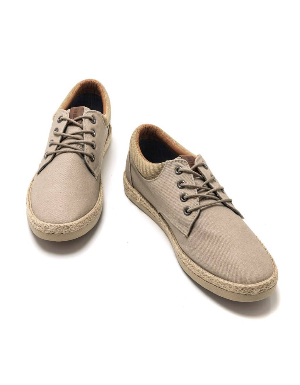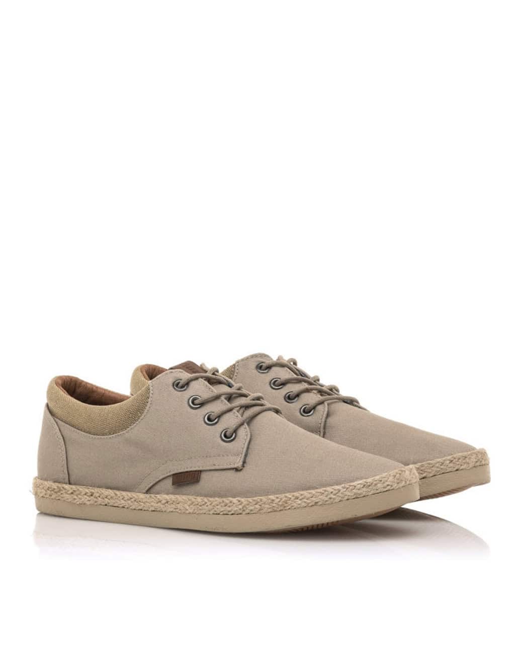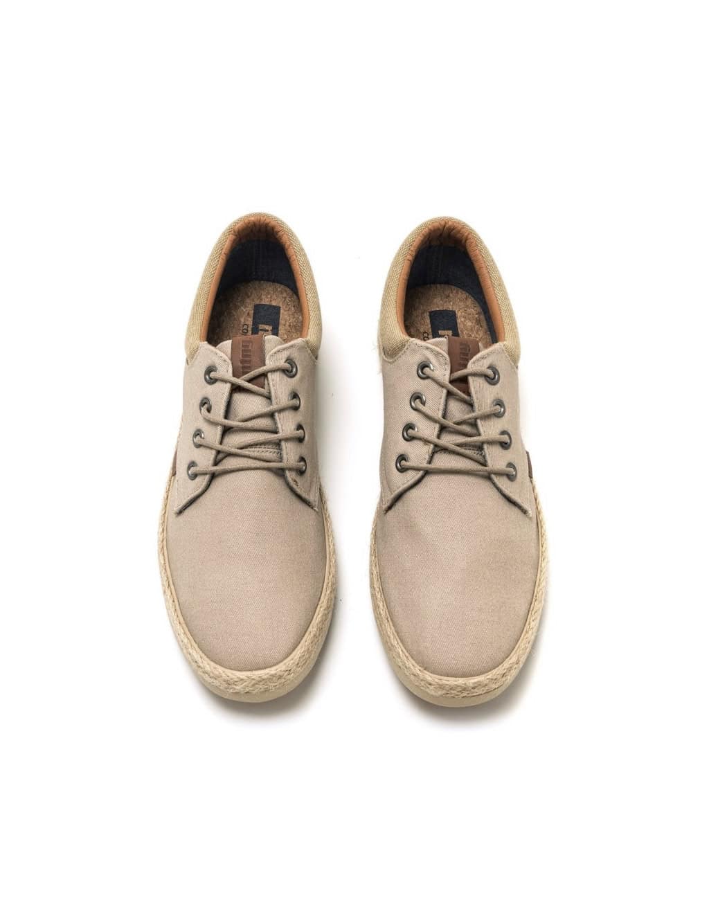 Zapatilla casual de la marca Mustang, para hombre. Diseñada en color arena, con un panel en tela vaquera en la trasera. Como detalle incluye una tira de yute en la suela. Cierre de cordones redondos. Logo de la marca en una etiqueta lateral. Te encantarán para completar tus looks más casual.