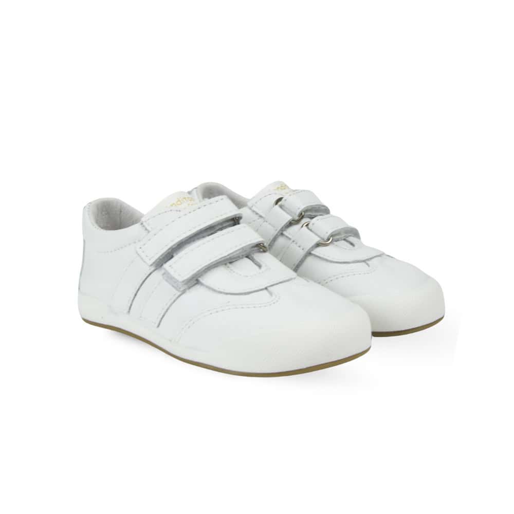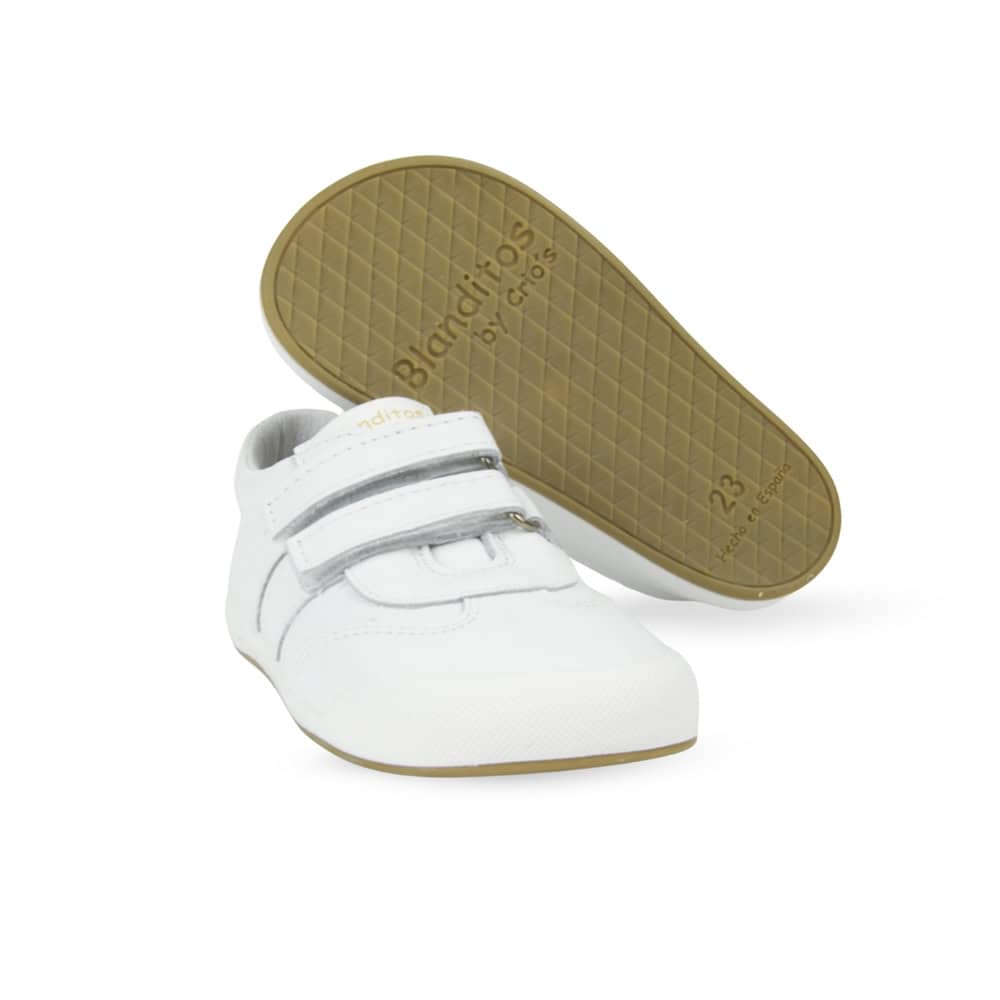 Zapatillas respetuosas de la marca Blanditos By Crios, modelo Milan, para niño y niña en color Blanco, elaborados en piel de la mejor calidad y de fabricación española. Se trata de un calzado respetuoso infantil ideal para la vuelta al cole, se combinan bien con los uniformes escolares y respetan el crecimiento natural sin interferir en su desarrollo. Realizadas en cuero, tanto el exterior como el interior. La plantilla que también es de cuero, es extraíble, totalmente plana y permiten una mayor ventilación. Previenen la aparición de hongos y bacterias.