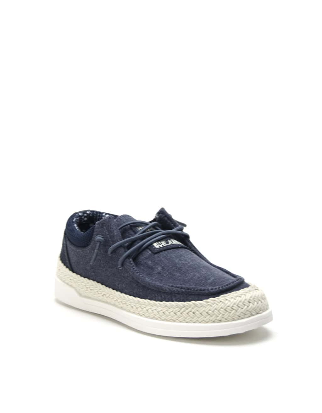 Zapatilla estilo wallaby para niño, de la marca Lois. Fabricado en lona con combinación de materiales. Cierre de cordones elasticos para mayor ajuste. Forro interior estampado y plantilla textil. Suela antideslizante de caucho con revestimiento en yute. Un zapato comodo.