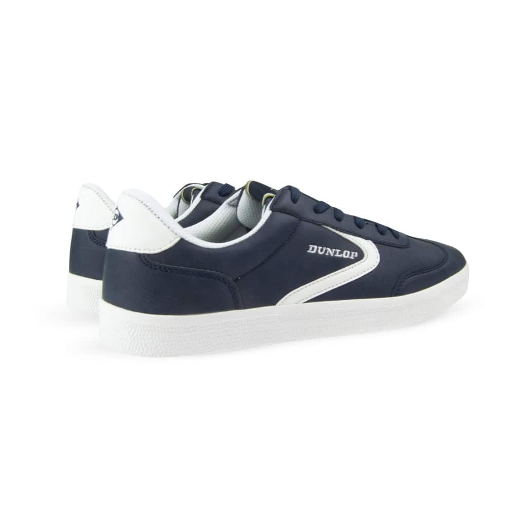 Zapatillas deportivas de hombre de la marca Dunlop, modelo 36054. Fabricado en un material que imita la piel. Zapatillas casual de tiempo libre, clásicas de la época con un diseño actualizado. En la parte superior elaborado con gamuzas sintéticas contrastadas . Forro microfibra acolchado y plantilla anatómica foamizada transpirable donde prima la comodidad para usar a diario. Cierre ajustable con cordones planos para asegurar la sujeción del empeine. Casco de goma antideslizante. Limpiar con un paño húmedo, no usar detergentes abrasivos.