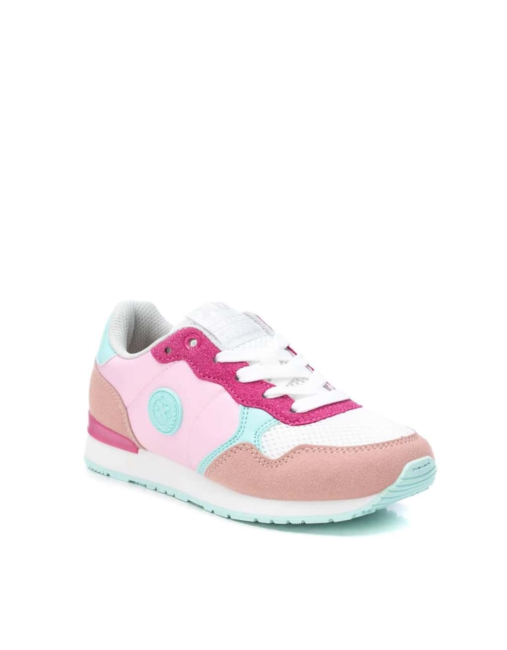 Zapatillas deportivas para niña, de la marca Xti Kids. Fabricada en combinación de textil con detalles en material que imita la piel. Cierre mediante cordones. Suela de goma antideslizante. Un modelo clásico de la marca renovado para esta temporada. Este modelo ha obtenido el certificado vegano por la organización mundial PETA (Organización de los derechos de los animales).