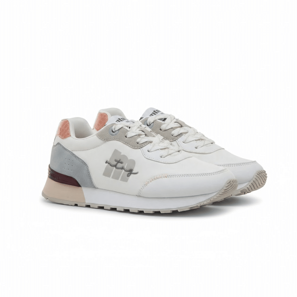 Las zapatillas mujer Mustang Joggo Classic blancas 60908 son una opción ideal si buscas unas zapatillas blancas mujer cómodas con diseño retro running y estilo actual. Este modelo combina una base blanca versátil con detalles en coral efecto coco, piezas en azul y gris y toques en burdeos que aportan personalidad sin perder facilidad de combinación.