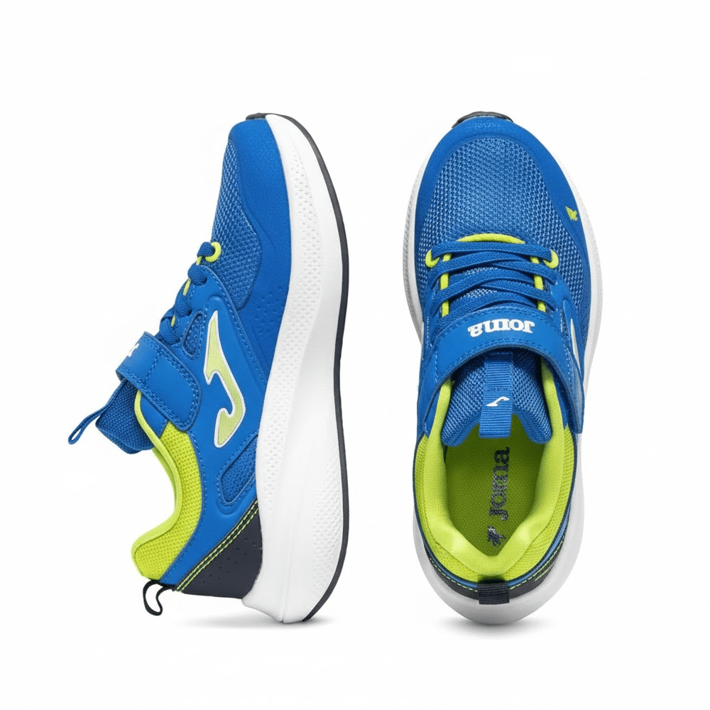 Zapatillas running niño Joma Ferro Jr 2604 royal con mesh transpirable, cierre adherente y suela resistente. Ideales para deporte, colegio y uso diario. Diseñadas para ofrecer comodidad, ligereza y resistencia en cada paso