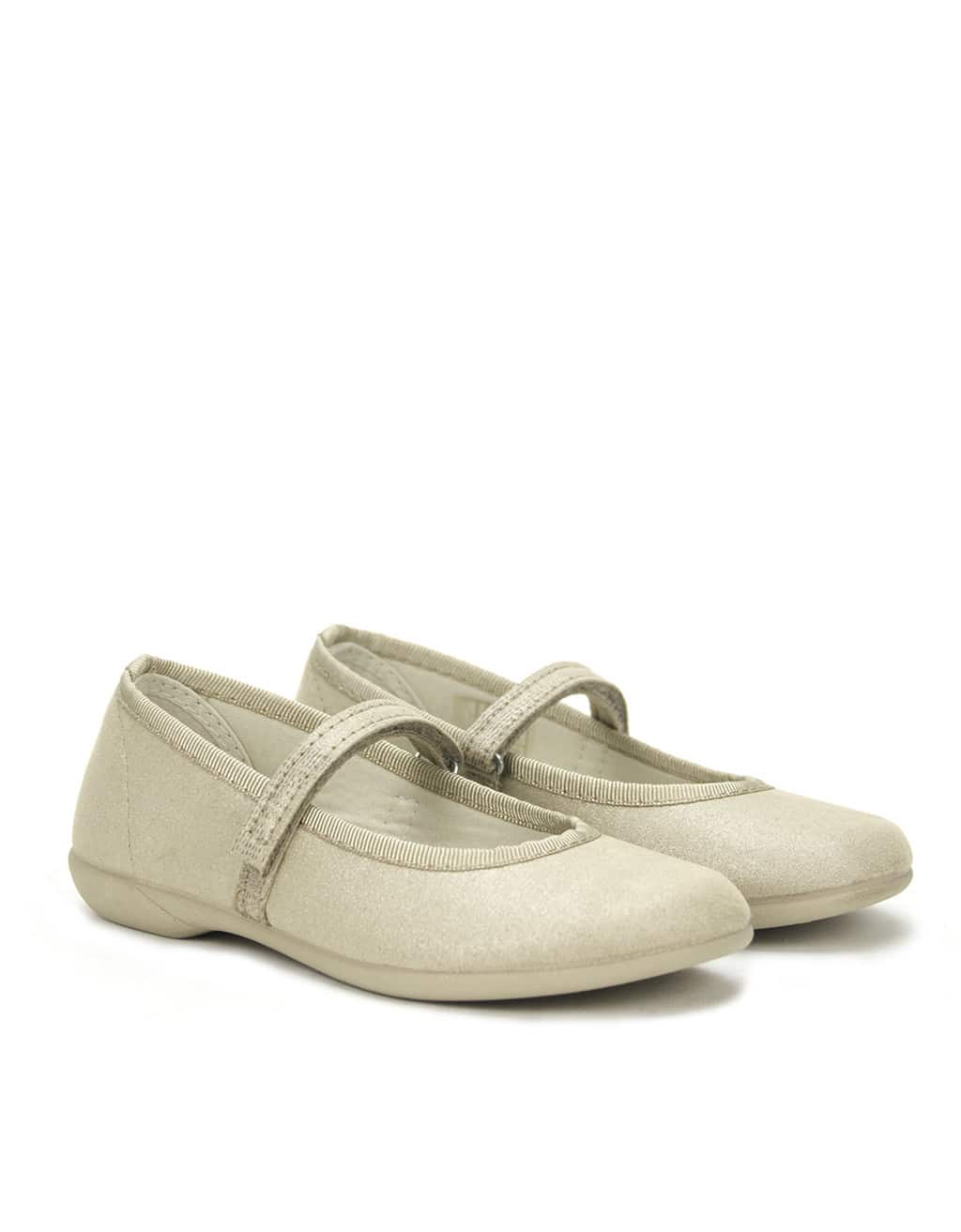 Zapato estilo mercedita para niña de la marca Condiz. Elaborada en material textil con cierre de tira con velcro regulable para facilitar el calce y ajuste del pie. Suela de goma al tono muy flexible y antideslizante. Fabricado en España.