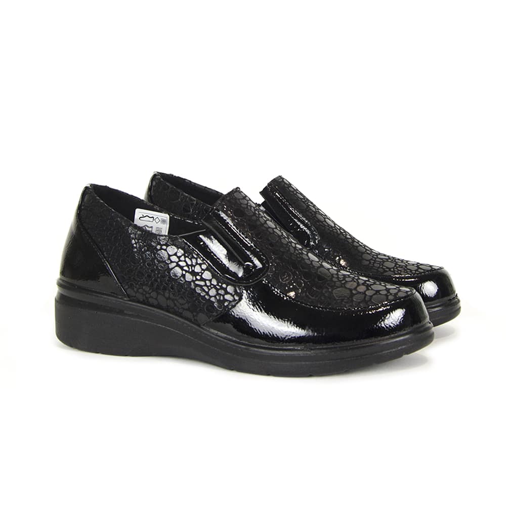 El Zapato Mocasín Mujer Amarpies AMD27071 es la opción ideal para quienes buscan un calzado cómodo, ligero y con un diseño actual que se adapte a cualquier momento del día. Fabricado con una cuidada combinación de material sintético, charol y textil, este mocasín destaca por su estética elegante y su gran capacidad de adaptación al pie.