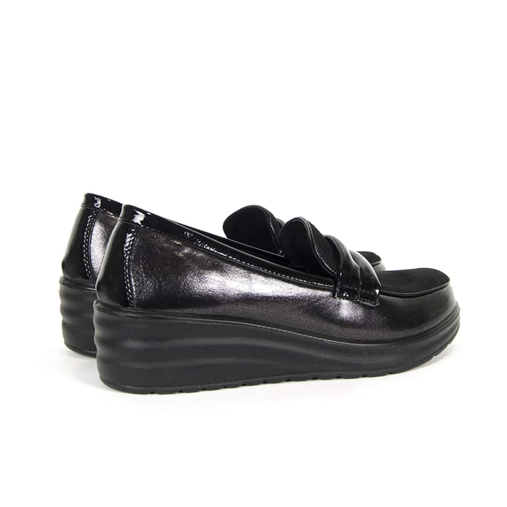 La cuña de goma mejora la estabilidad y aporta una altura cómoda para el día a día, convirtiendo este mocasín en una opción ideal para mujeres que buscan estilo sin renunciar al bienestar. Su diseño atemporal lo hace fácil de combinar y perfecto para múltiples ocasiones.