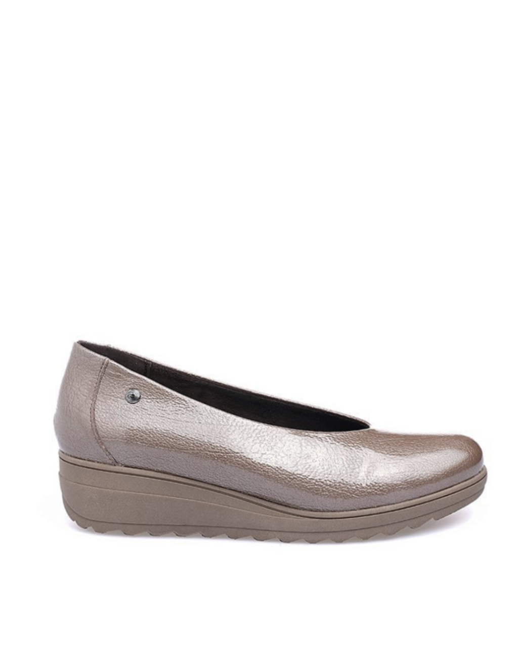 Zapato estilo bailarina confort para mujer de la marca Kaola, referencia 4158. Fabricado en España en charol de primera calidad y extremadamente suave. Es ideal para personas con los pies delicados por la suavidad de sus materiales. La altura del tacón es ideal para evitar dolores de espalda o de piernas. Cómoda planta y suela de goma antideslizante. Ancho de horma especial y plantilla acolchada en su interior. Modelo cómodo y actual para cualquier el día a día. Altura de la cuña: 4 cm. Un modelo urbano, clasico y extremadamente cómodo.