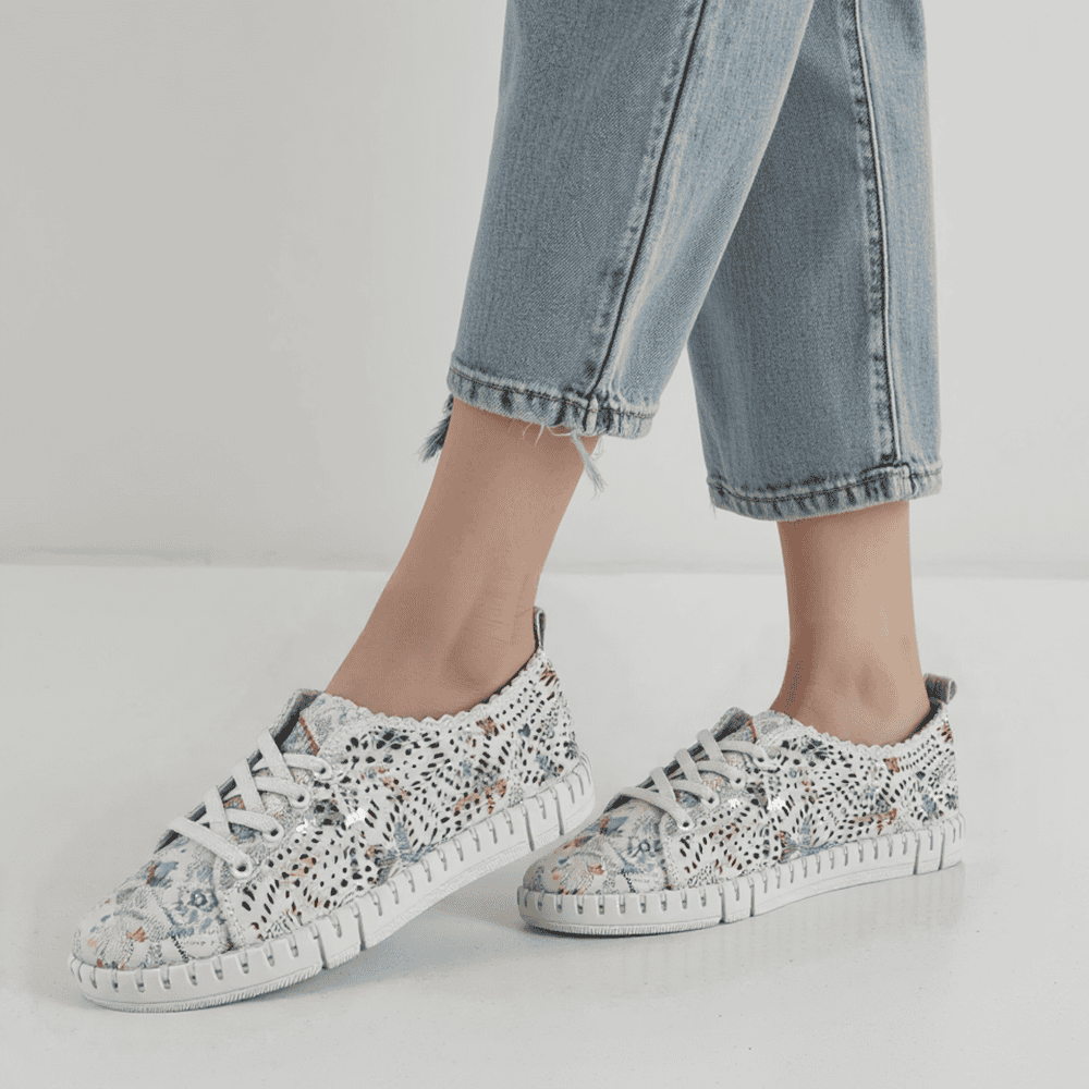 Zapato casual de mujer de la marca Manlisa, modelo 4777. Fabricado en piel de alta calidad. Cierre mediante cordón elástico para facilitar el calce. Ideal para tu comodidad diaria. Diseño con un divertido estampado y calado decorativo ideal para esta temporada. Plantilla extraíble, que garantizan la comodidad desde la primera puesta además de amortiguar y suavizar los impactos. Un básico para acompañarte esta temporada.